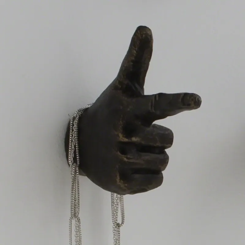 Hand sculptures are made of cast iron, with a bronze power coat finish. They are great as wall sculptures or functional hangers.
