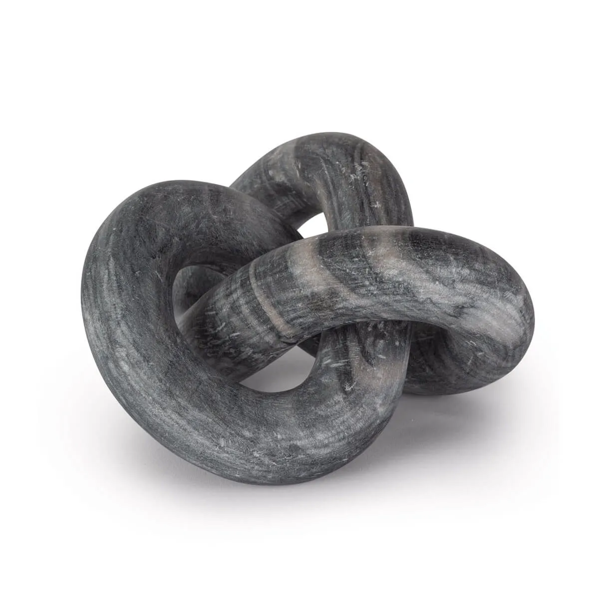 Hand-carved from a single piece of black stone, this abstract sculpture weaves about creating a flowing singular form. Add this modern tabletop accessory to your living room or bedroom.