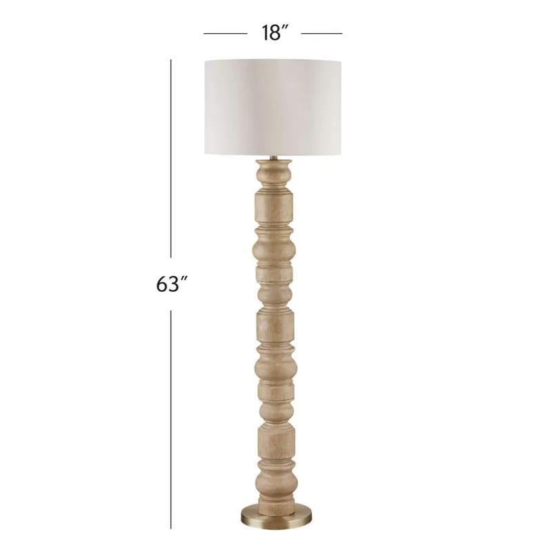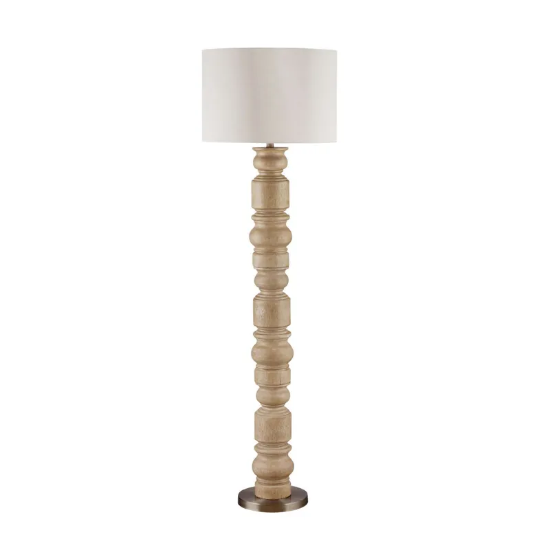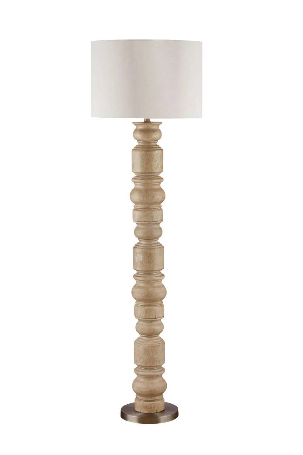The Helford Floor Lamp blends modern and traditional design with its beautifully carved wood base, adding texture and elegance to any space. The clean lines and intricate details of the base are complemented by a simple drum-style shade, which softens the light and creates a warm, inviting glow. This versatile lamp enhances a variety of interior styles, offering both sophistication and functionality. The Helford Floor Lamp is a perfect choice for adding a refined touch to your home while providing practical lighting.