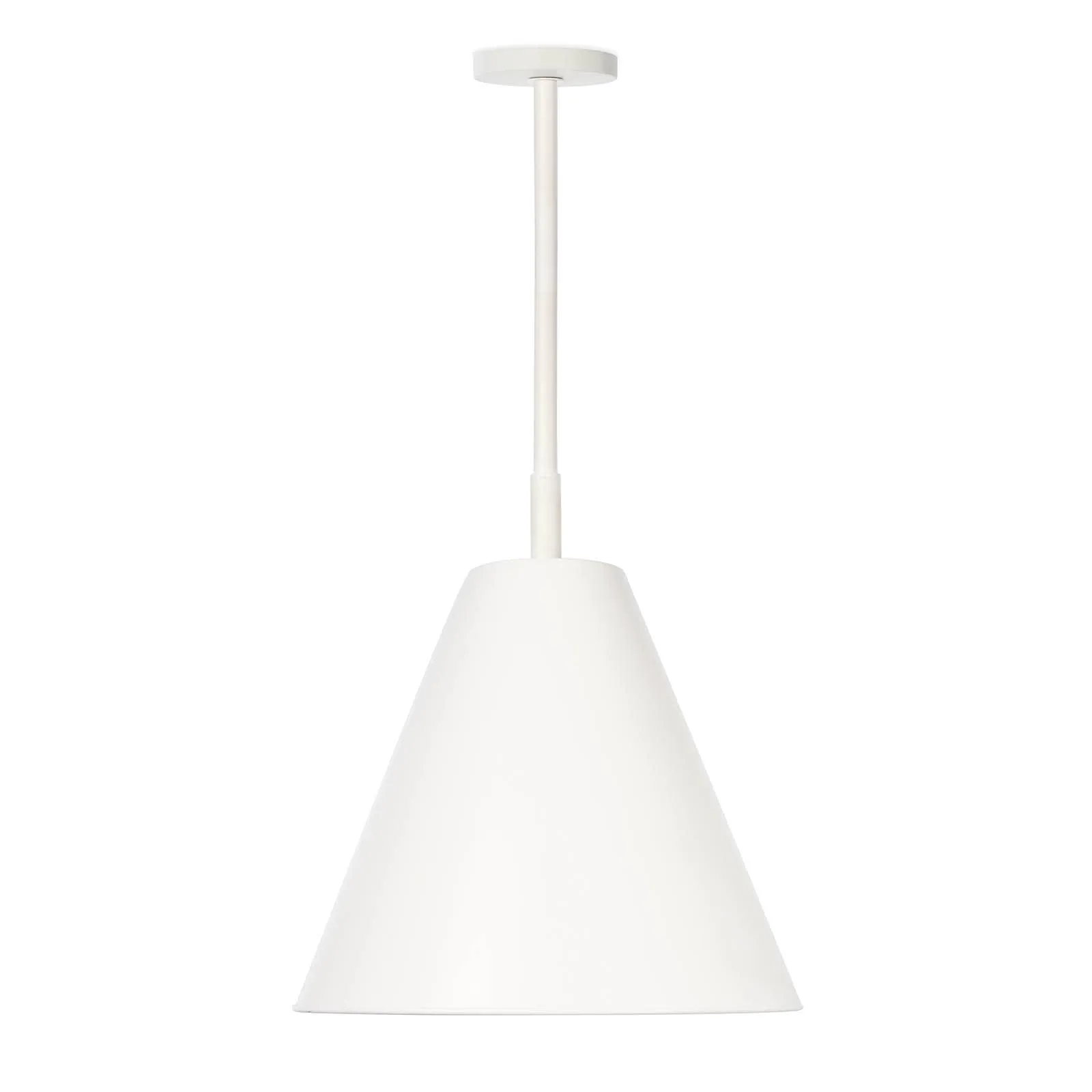 The Bluff Outdoor Pendant is a sleek, cone shaped fixture with powder coated, satin finish both on the exterior and interior of the shade. The entirely metal fixture is suspended from a single pipe for a truly modern aesthetic. Add this fixture to your exterior living space as a unique, sculptural detail during the day and as a simply stunning luminary by night. Regina Andrew outdoor lighting pieces are constructed with the best quality materials to live amongst the elements while providing the signature, designer style that RAD customers know and love.