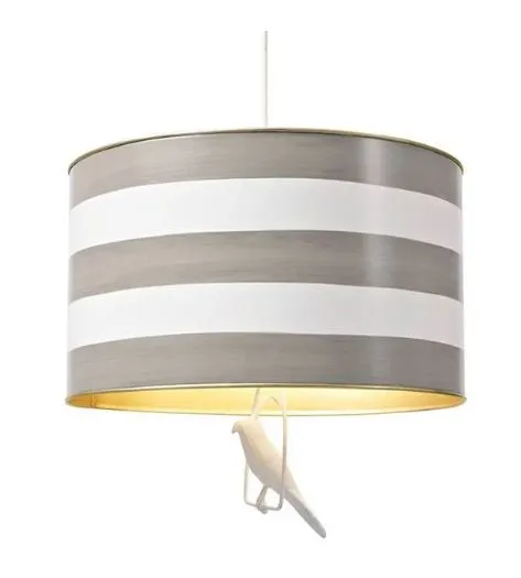 A classic drum pendant with a twist! An adorable tweetie bird on a swing! Bird is handcrafted of papier mache and ready to brighten up your space.