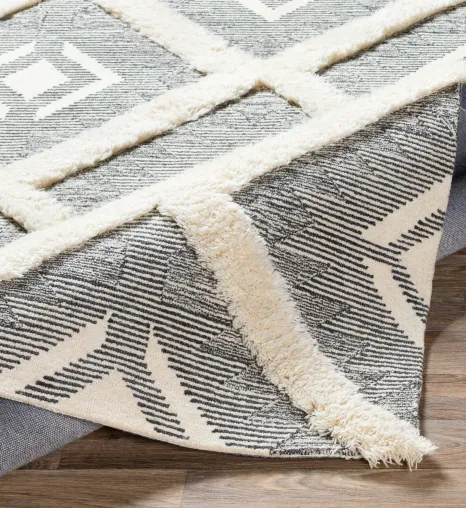 Our rugs from the Cherokee Collection feature striking global inspired designs that endure at the forefront of contemporary trends. With their hand tufted construction, these rugs offer an affordable alternative to other handmade constructions while perserving the same natural demeanor and charm. Made with Wool in India, and has High Pile. Spot Clean Only, One Year Limited Warranty.
