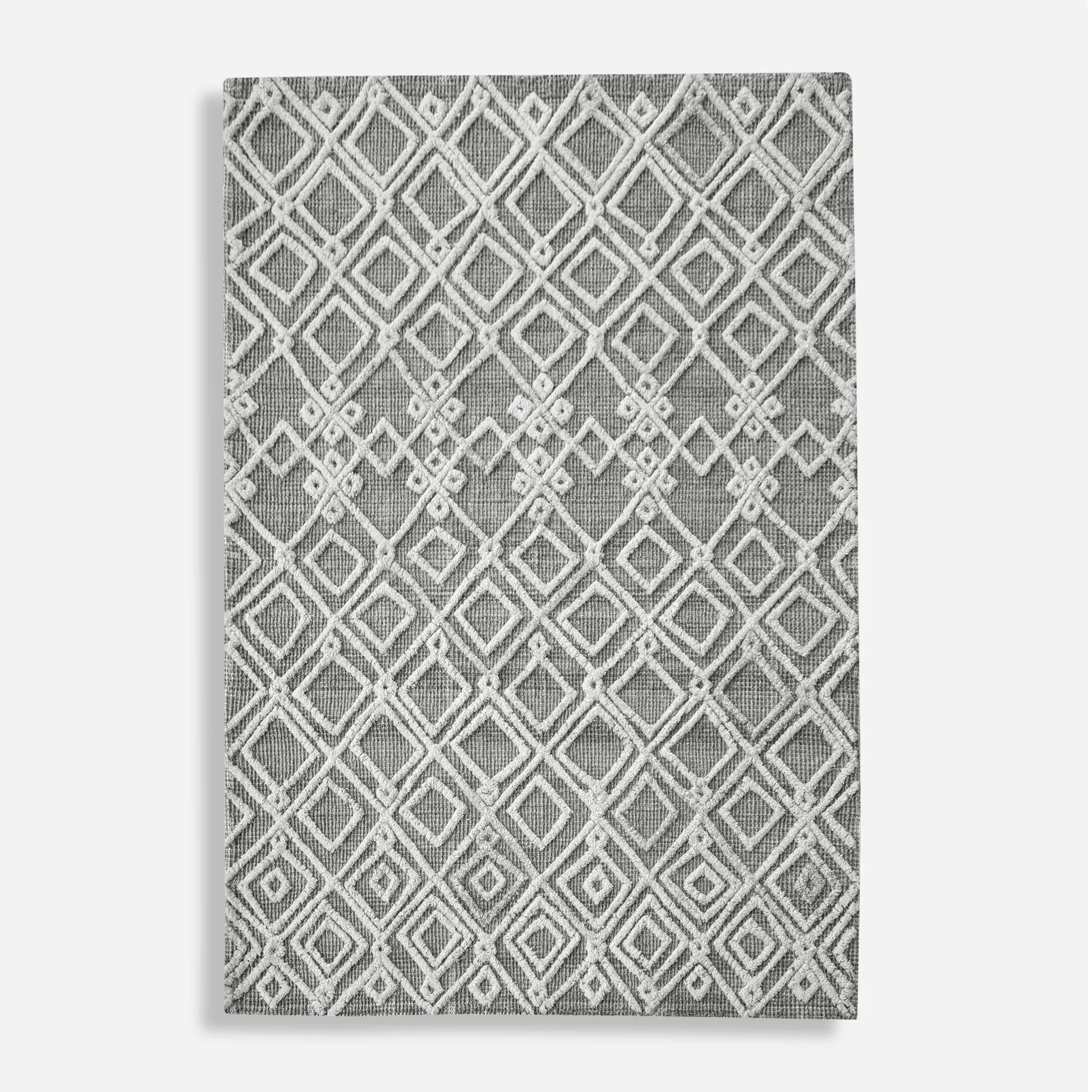 Woven Natural Gray Wool, Featuring An Ivory, Over Tufted, Tribal Inspired Design.