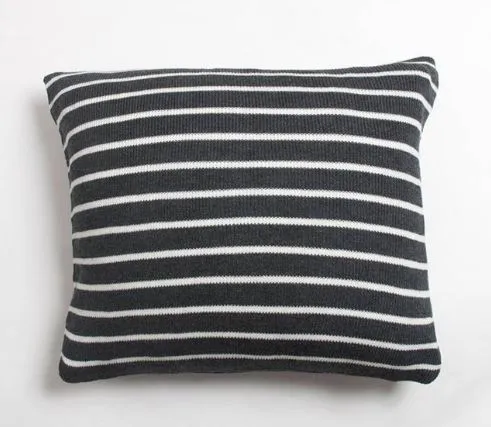 Beautiful and soft blend of wool and acrylic makes this pillow soft and smart. Gray pillow with thin lines of white and solid border. The pillow shows off its great look with coconut shell buttons.