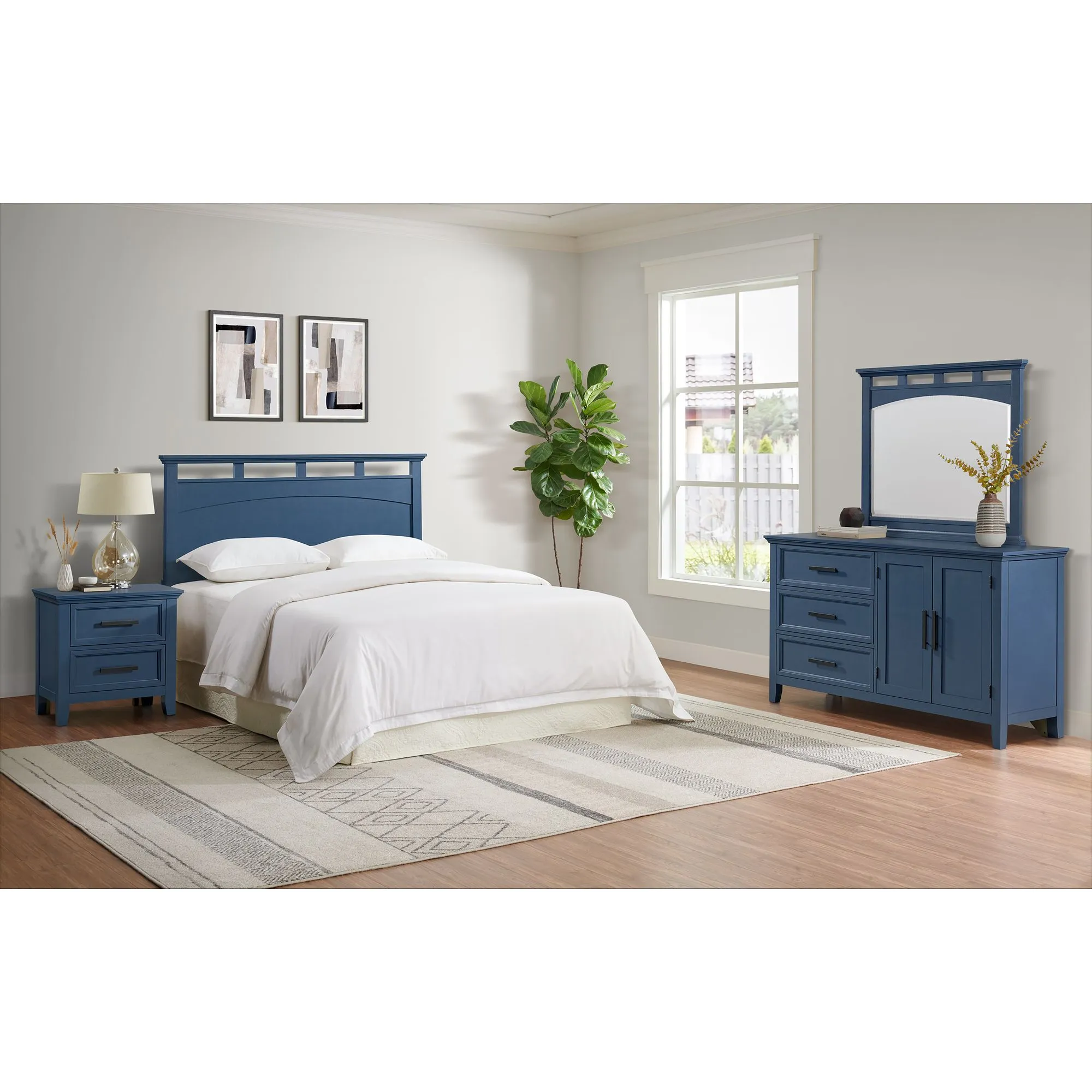 Matias RTA Bedroom Set with Twin Headboard, Dresser, Mirror & Nightstand in Blue