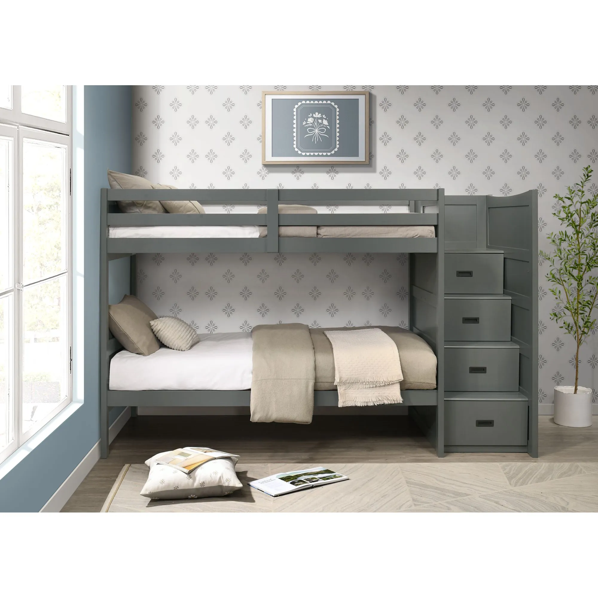 Sami Twin Over Twin Step Bunk with Left HB in Grey