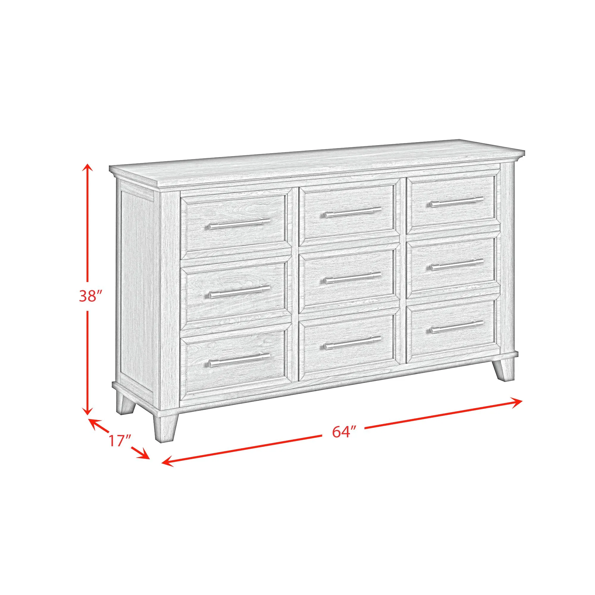 Canterbury 9-Drawer Dresser in Grey