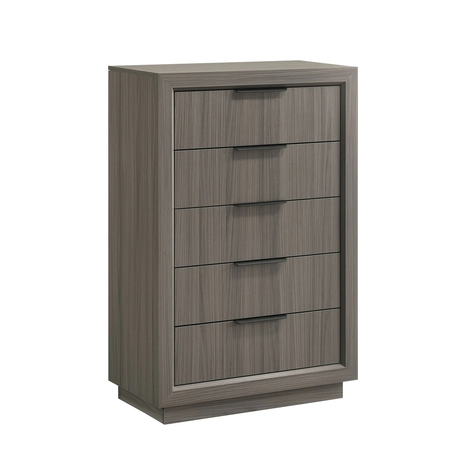 Martina Queen UPH Bed with Palmer Smoke Fabric, 2 Piers, and 2 Nightstands in Grey