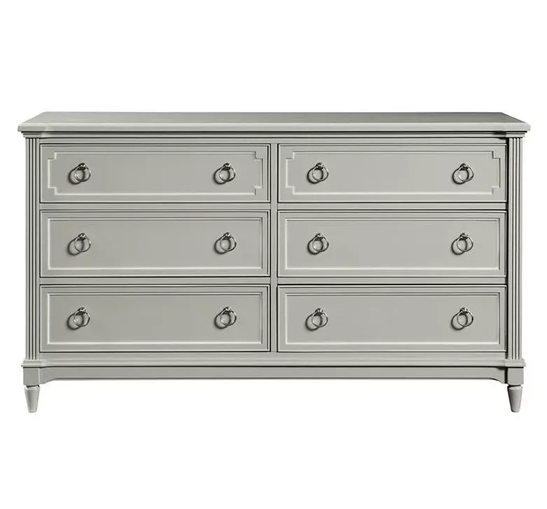 The Clementine Court Dresser lets girls have it all-stylishness and plenty of room for clothes, clothes and more clothes. Available in a luxuriant Frosting and Spoon finish with six English dovetailed drawers and brushed nickel hardware.