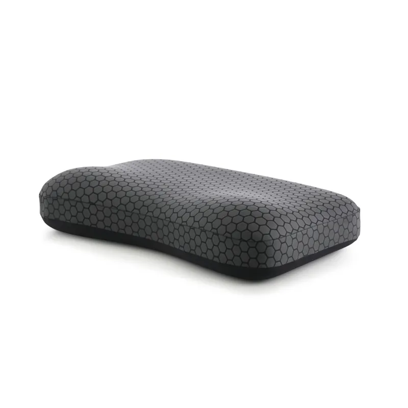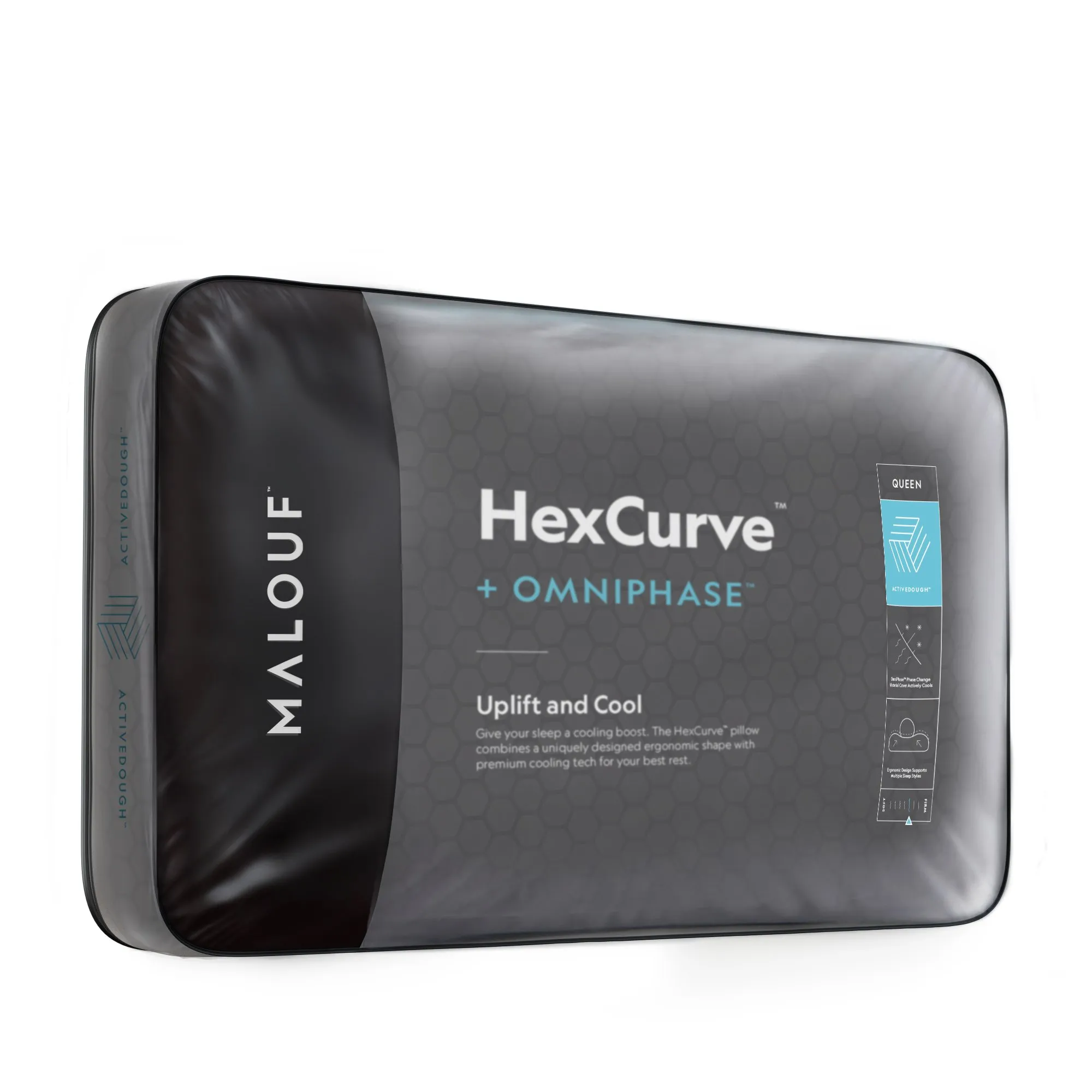 Lifting, cradling, and cooling all in one—that's the HexCurve™ pillow. The ergonomic central curve and lifted corners create different zones of support for people with multiple sleep styles. A raised cheek area adds needed support for side sleepers, while the center gently cradles the head and neck for back sleepers. And for even more comfort, plush ActiveDough™ memory foam helps relieve pressure points with a light, responsive feel. A zippered cover snugly fits the unique design, and a printed OmniPhase™ phase change material grid on the cover creates an actively cooling network that moves heat away from the head and neck.
