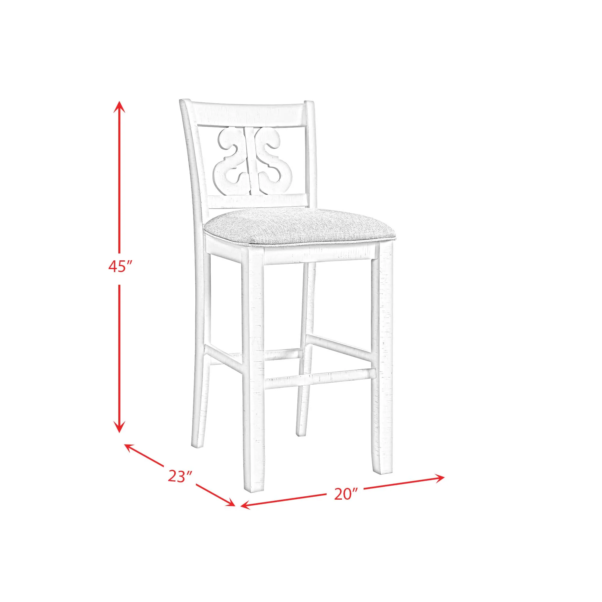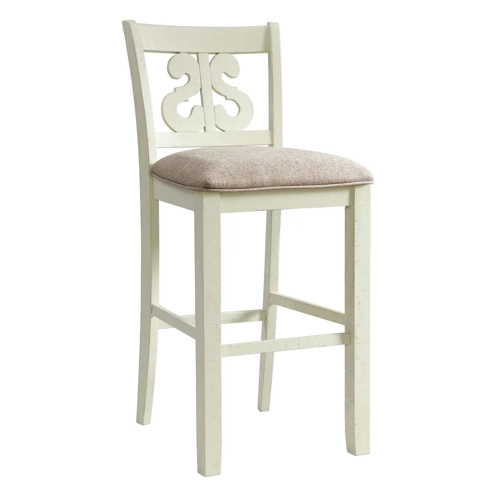 Stone 30" Bar Scroll Back Stool w/ Wood Seat in White (2 Per Carton)