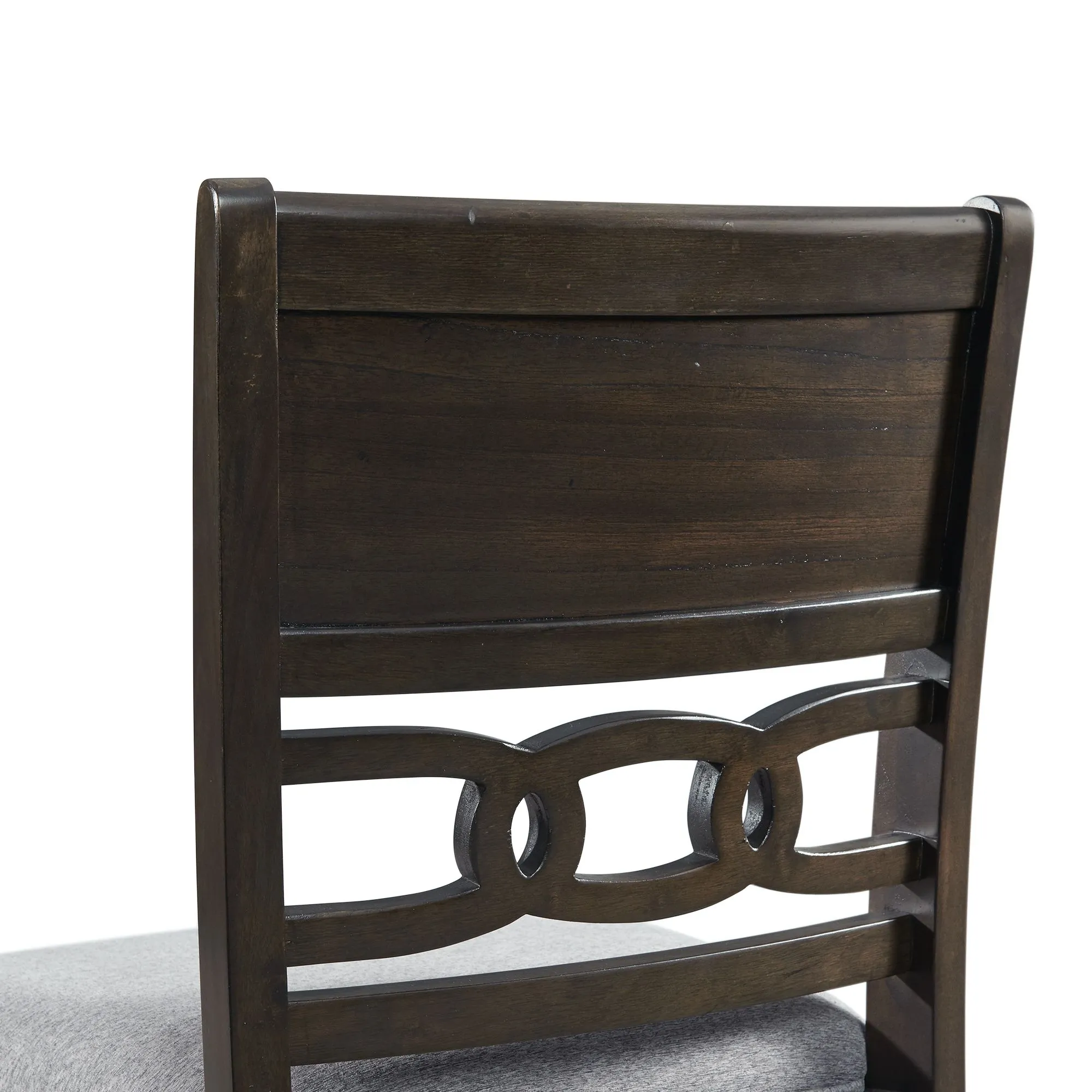 The Amherst Counter Height Side Chair Set will look fantastic in your living room! This set includes two side chairs that will look great around your dining table. This dynamic duo features an upholstered seat and back that will give you ultimate comfort while you enjoy your meals. The back of the chair also features a cool, link design that instantly adds flair to this already stunning set. The dark, walnut finish pairs beautifully with the gray fabric and a combination youll enjoy year after year. Add this chair set to your home today for a look youll enjoy day after day!