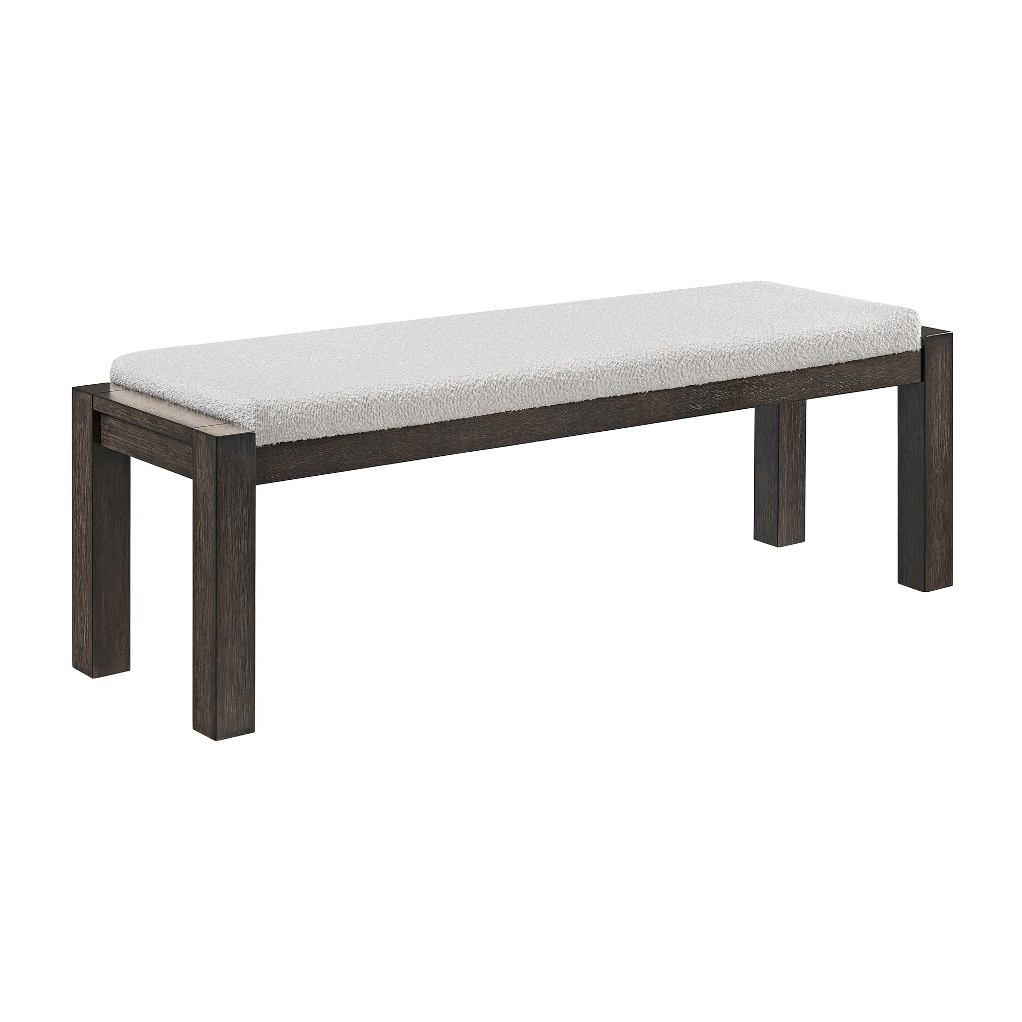 The Breckenridge Dining Bench seamlessly combines comfort and style, making it a perfect addition to your dining area. Upholstered in light, textured fabric, the bench offers a soft and inviting seating option. The black wood grain ends and legs provide a striking contrast and enhance its modern appeal. The foam cushion seat ensures exceptional comfort, making it ideal for both casual and formal dining settings. With its elegant design and sturdy construction, the Breckenridge Dining Bench complements any dining room and adds a touch of sophistication to your home.
