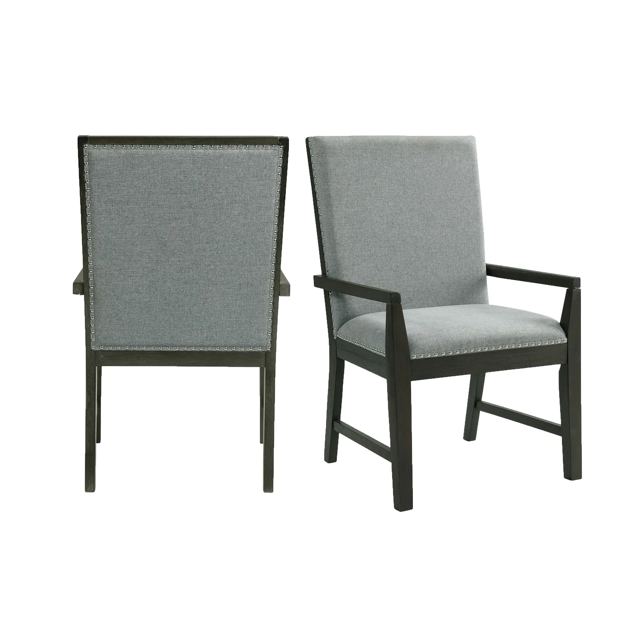 Glenmore Dining Arm Chair with Light Brown Fabric in Aged Grey (2 Per Carton)