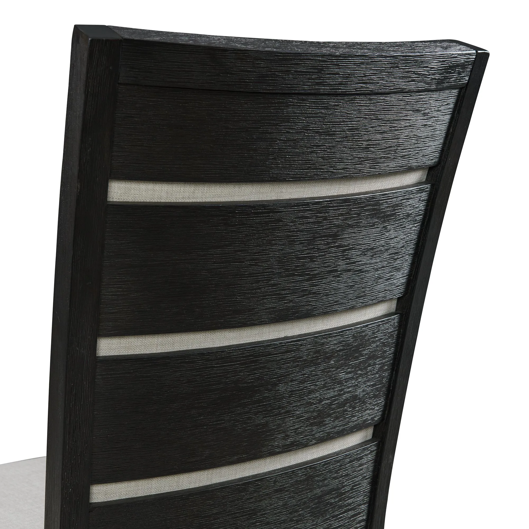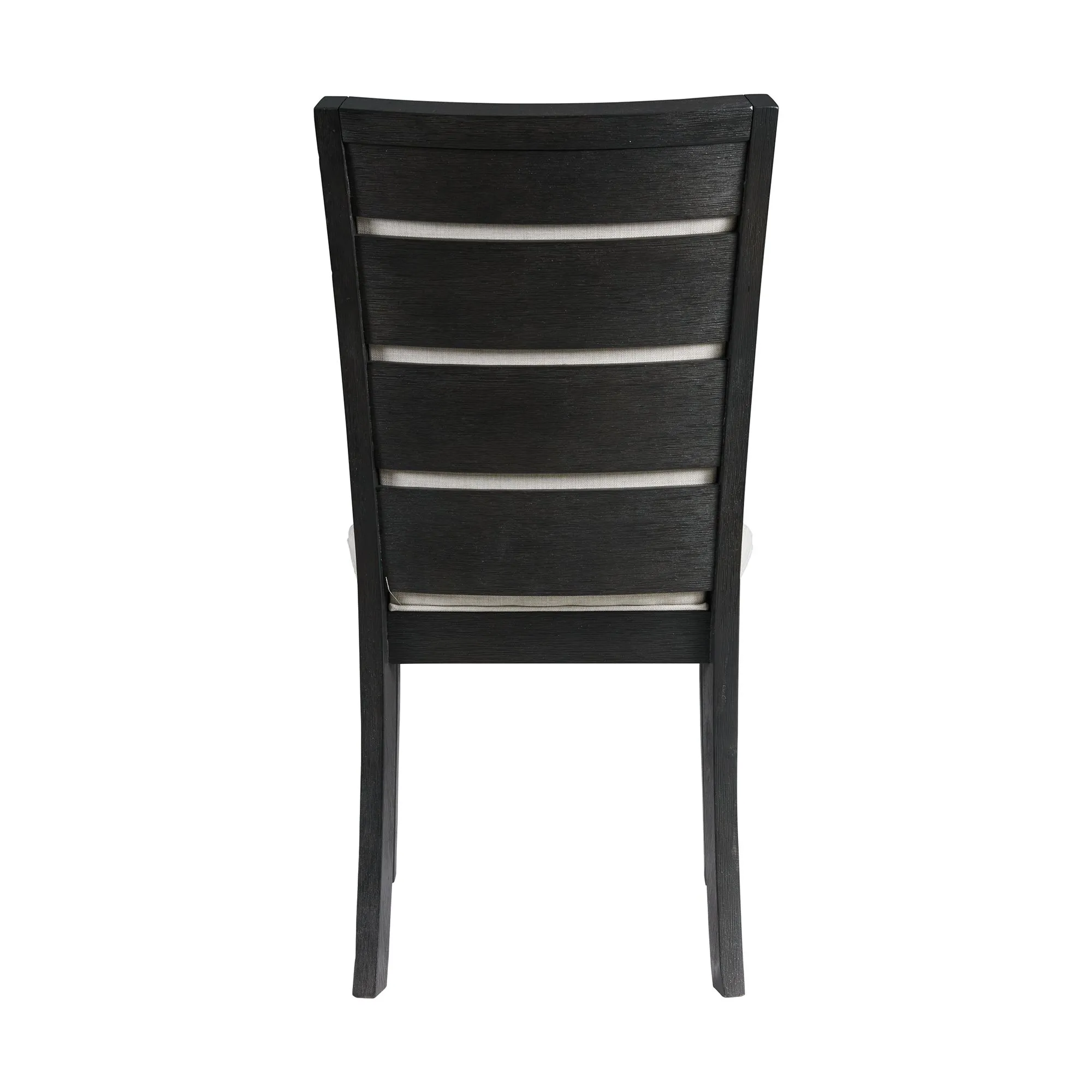 The Grady Slat Back Side Chair Set is the missing piece to your Grady Dining Table! This duo includes two chairs. The cool feature about these chairs, is not only is the inside of the back upholstered, but so is the outside of the back and its covered with wooden slats. This provides the style you crave without losing comfort thanks to the foam cushion back. The gray upholstery pairs perfectly with the rich black finish; making it easy to match with any existing decor. Add this super stylish duo to your home today for a look that will last year after year.