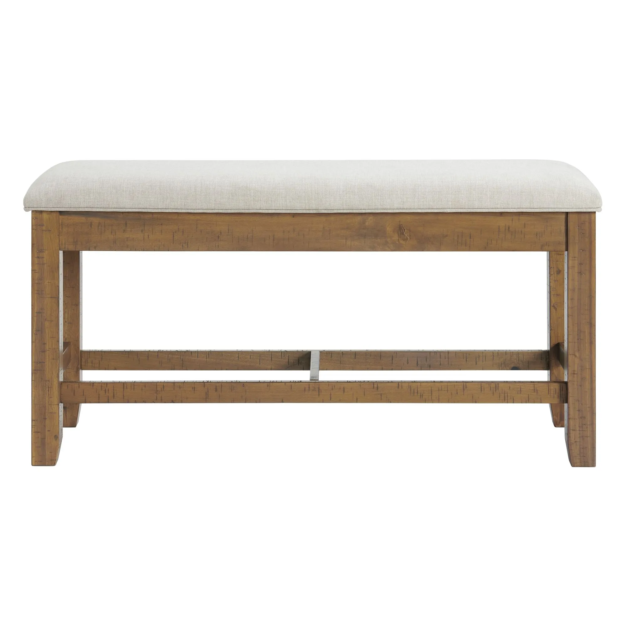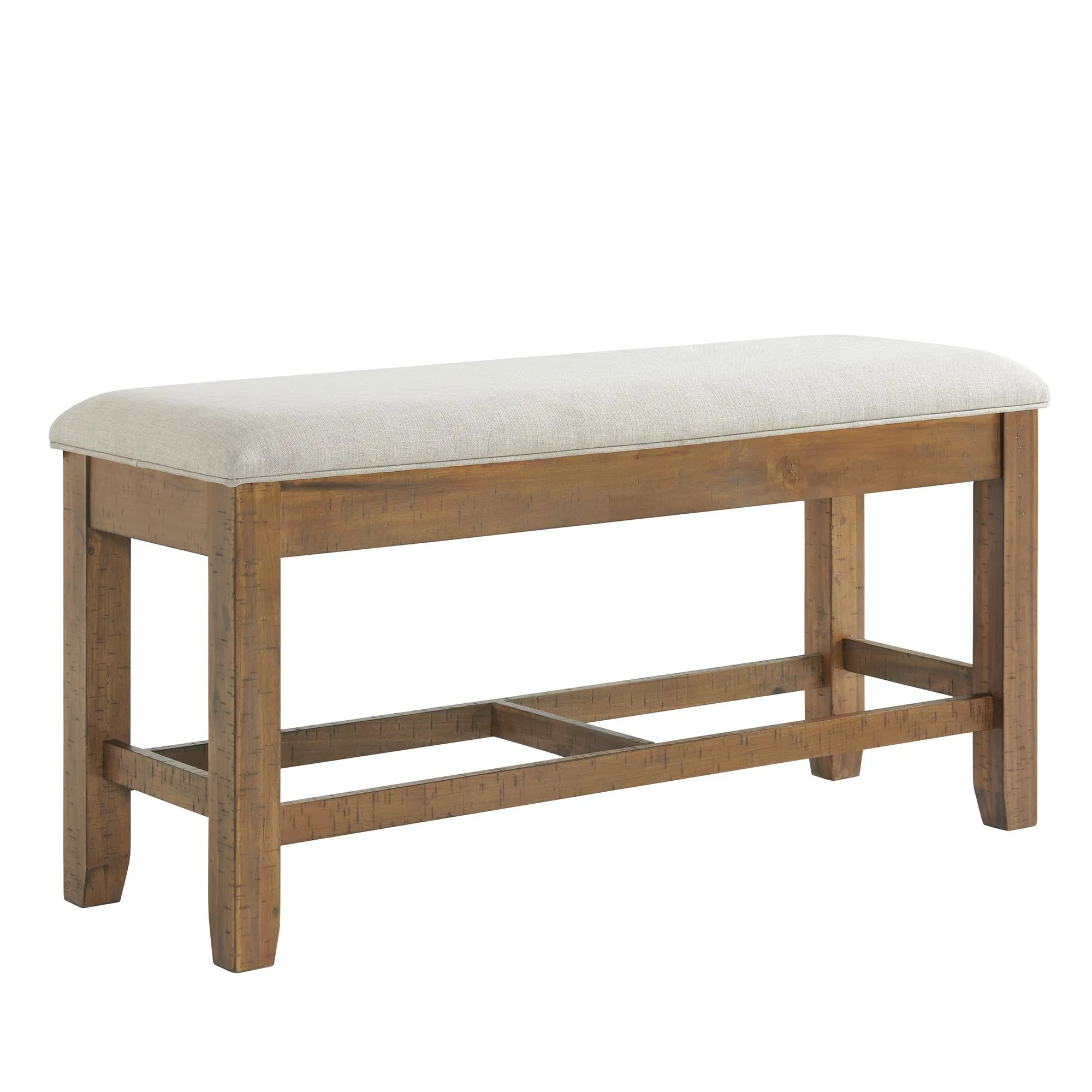Bellevue Counter Bench with Beige Fabric in Antique White