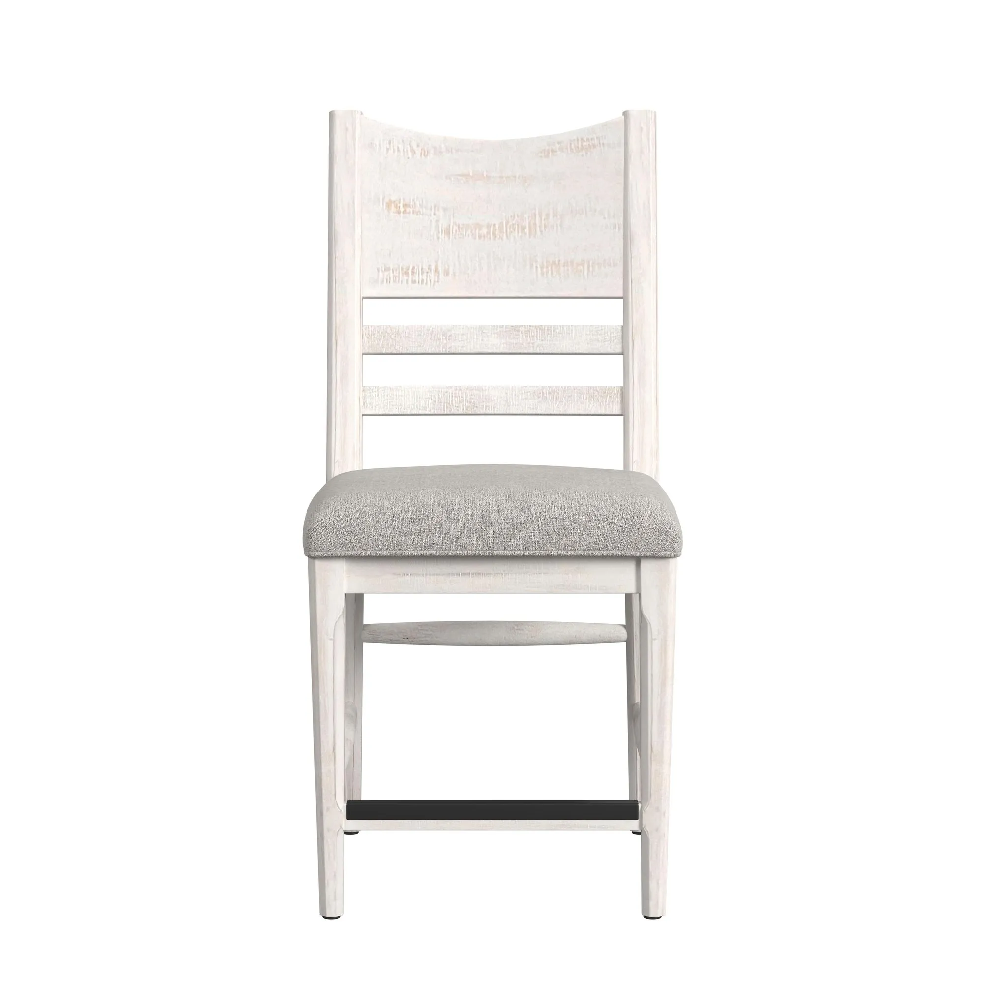 Rogen Rustic Dining Side Chair with Grey Fabric in Rustic White (2 Per Carton)