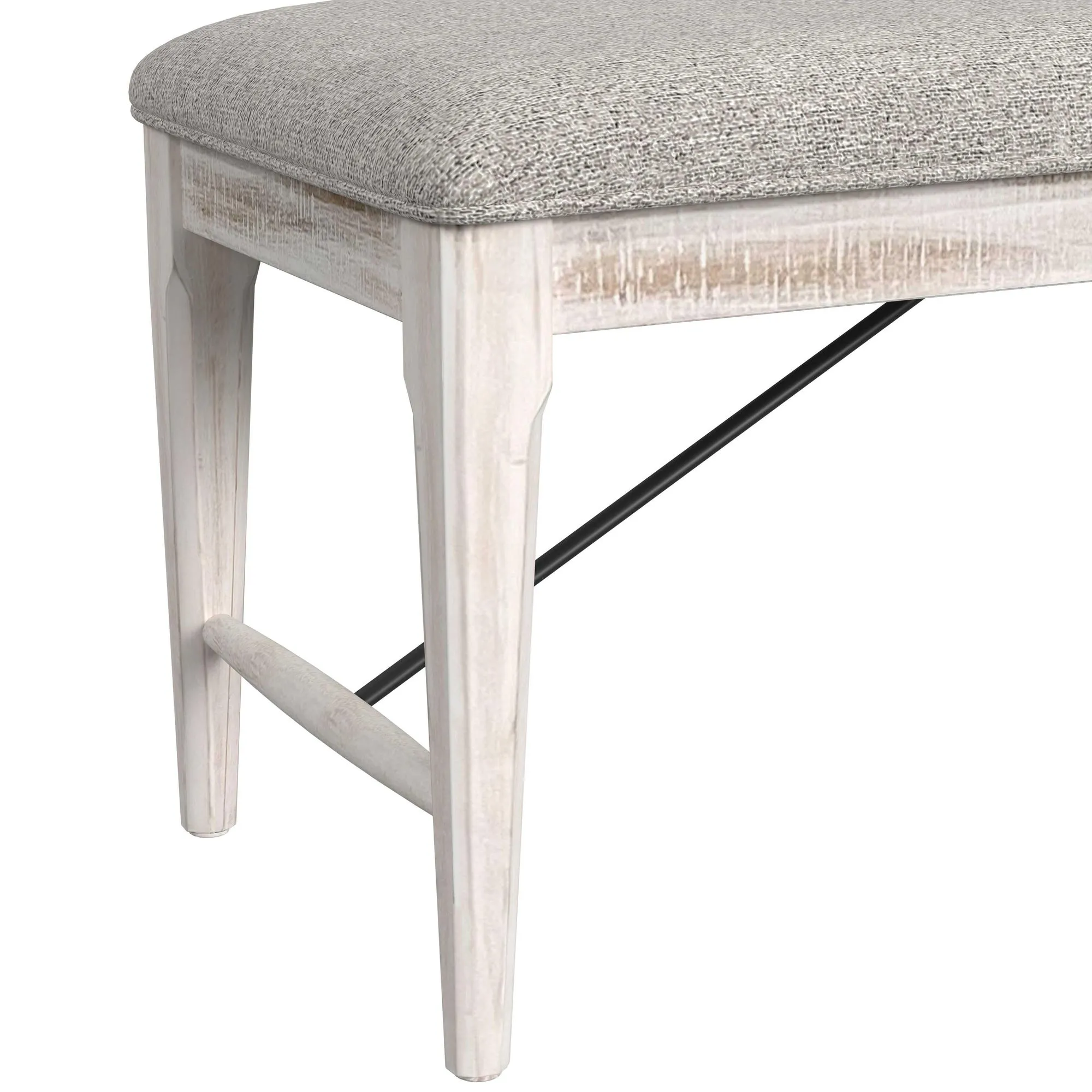 Bellevue Counter Bench with Beige Fabric in Antique White