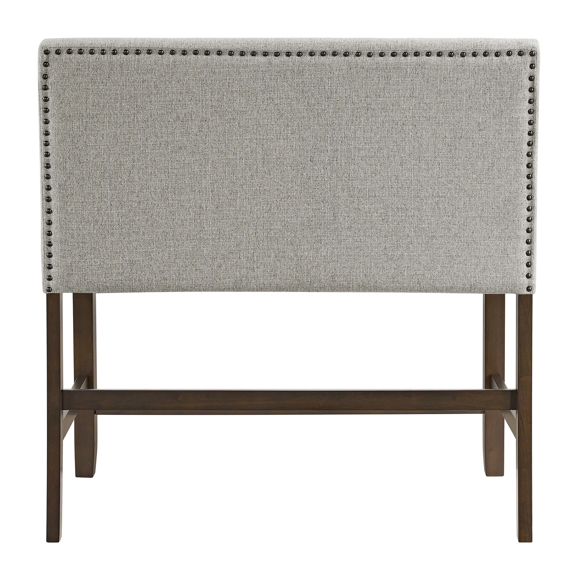Seneca Counter Bench with Upholstered Back and Grey Fabric in Grey