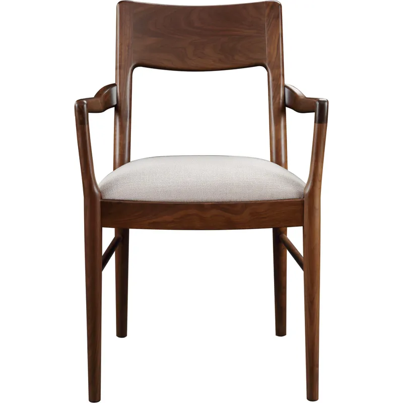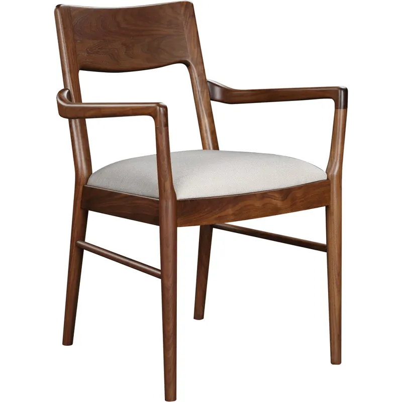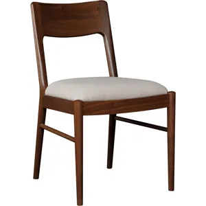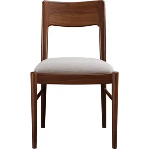 Inspired by mid-century modern style, Walnut Grove dining chairs are hand-sculpted out of American black walnut and anchored with artfully shaped legs. A contoured wood back offers comfortable support, and an inset upholstered seat beckons you to relax. Available in your choice of fabric or leather.