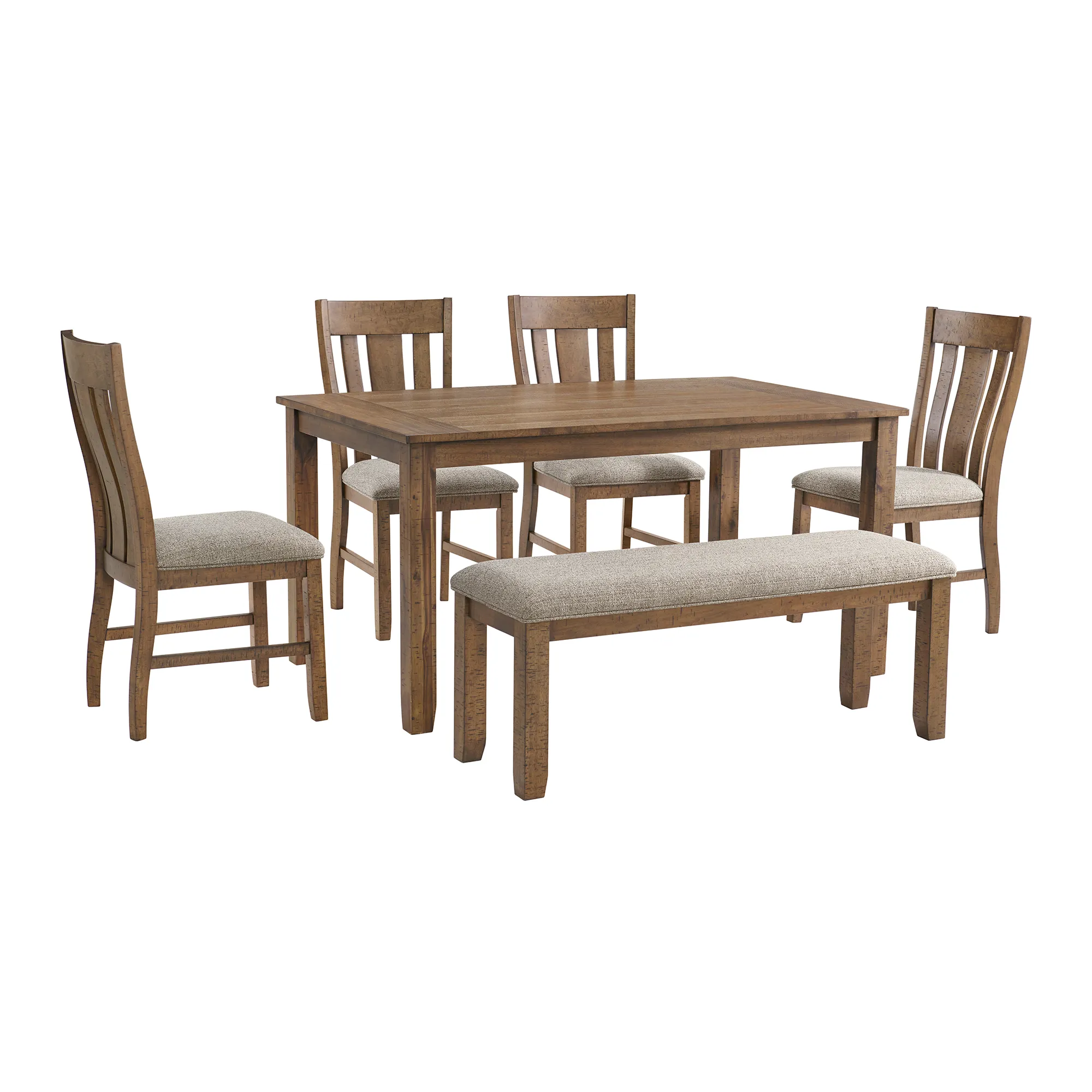 Alex Grey 60" 7 PC Dining Set (Grey Table with Black PU Seat)