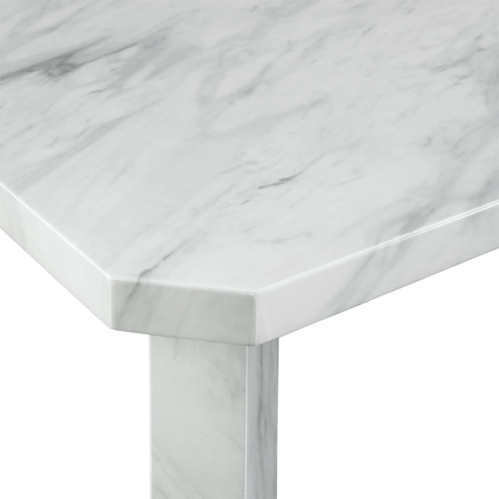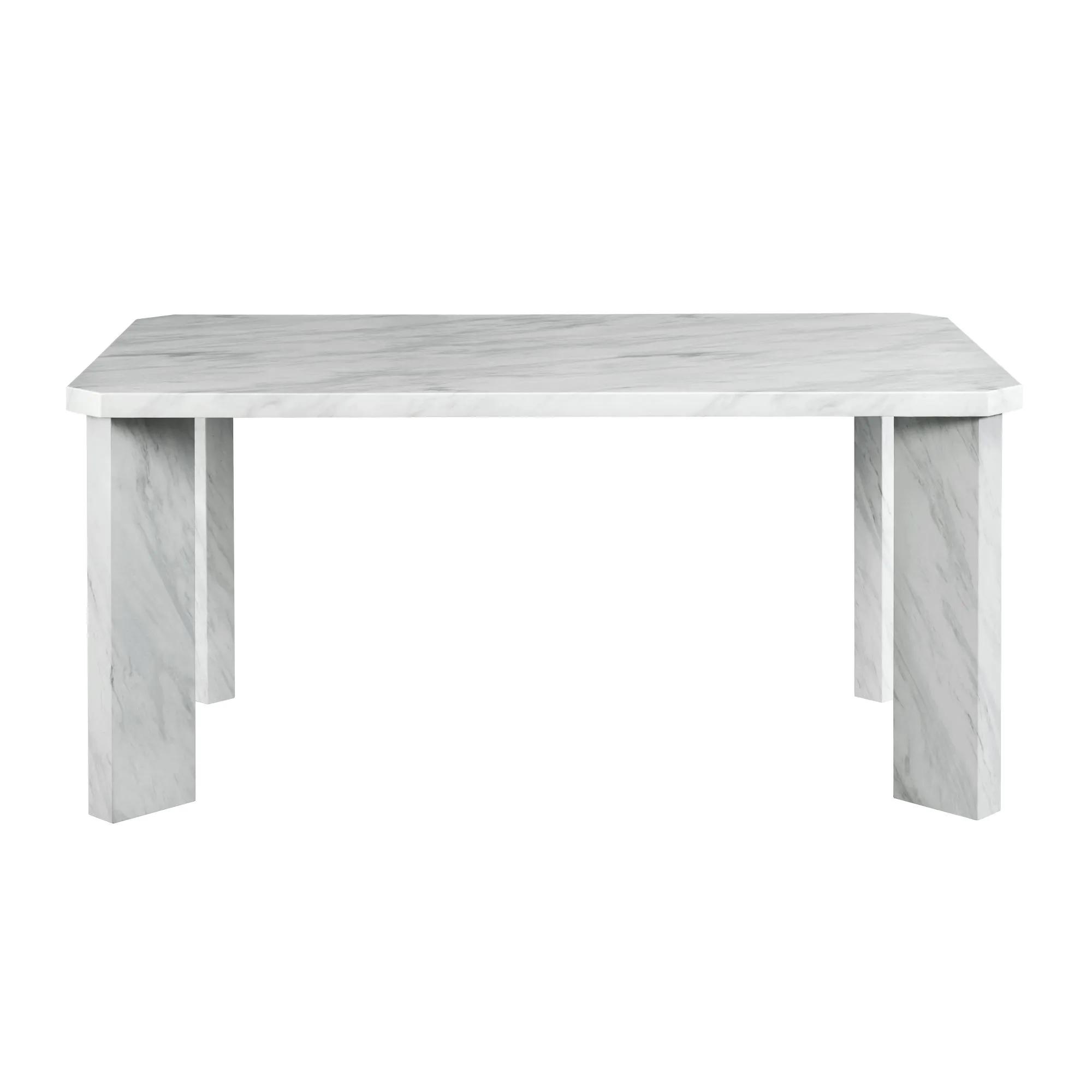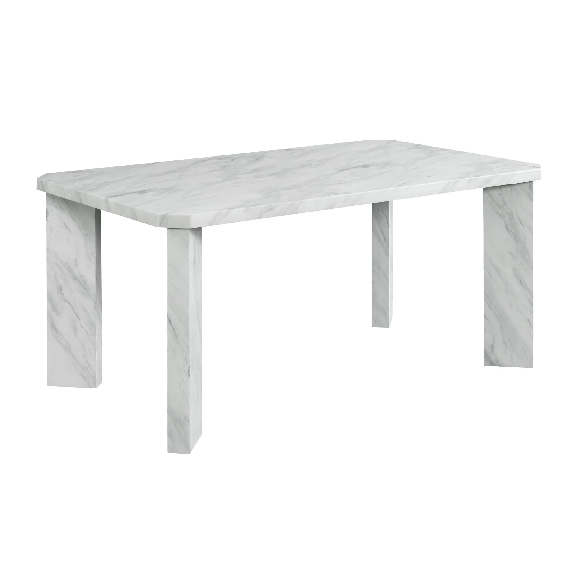 A beautiful rectangular dining table that is a statement piece at first glance. Featuring an elegant silhouette that speaks to its contemporary style, this table is finished with a marble paper veneer that adds fresh originality. Let this piece settle into your home and enhance your effortless style in either a beautiful white or grey color.