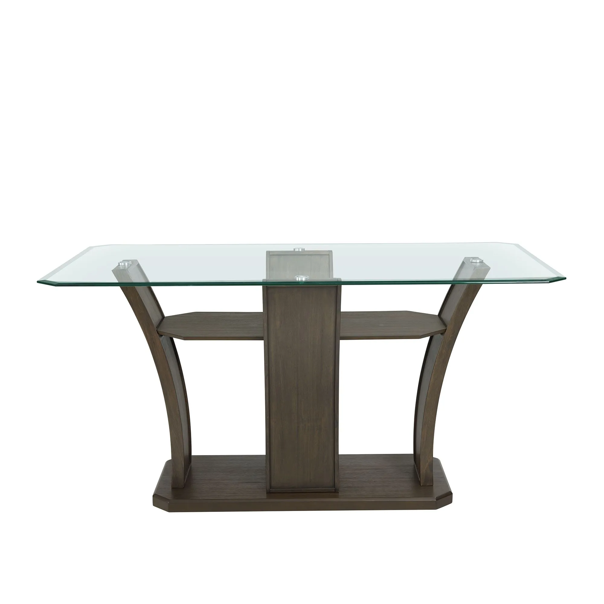 The Dapper Rectangular Counter Height Dining Table is going to make a big statement in your dining room! This dining room staple comes with a glass table top, instantly adding a chic style to your home. The transitional pedestal base pairs perfectly with the glass table top and will be a style you never tire of in your home. The dark walnut finish will easily pair with any existing decor you might have in your home. Add this Standard height table to your home today!