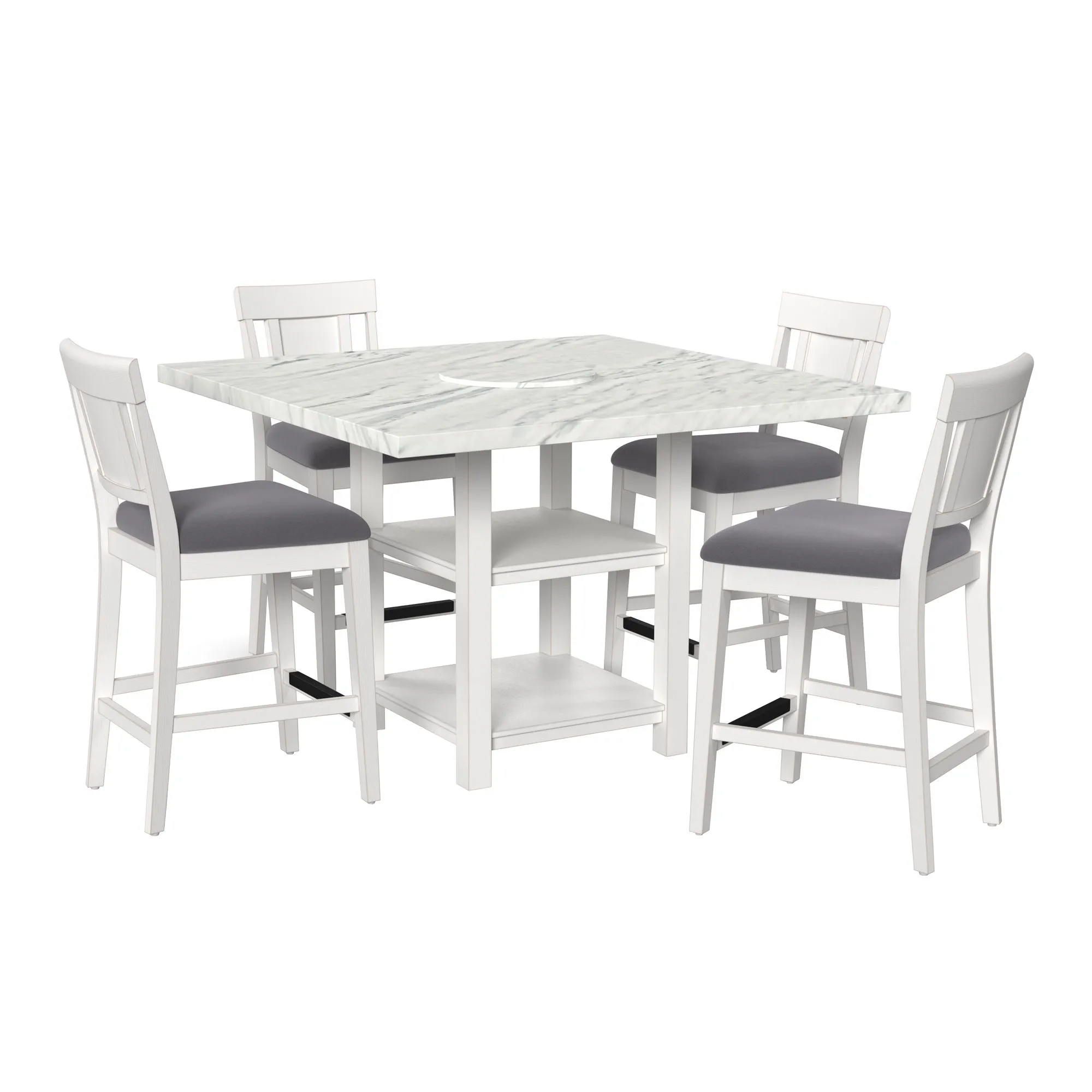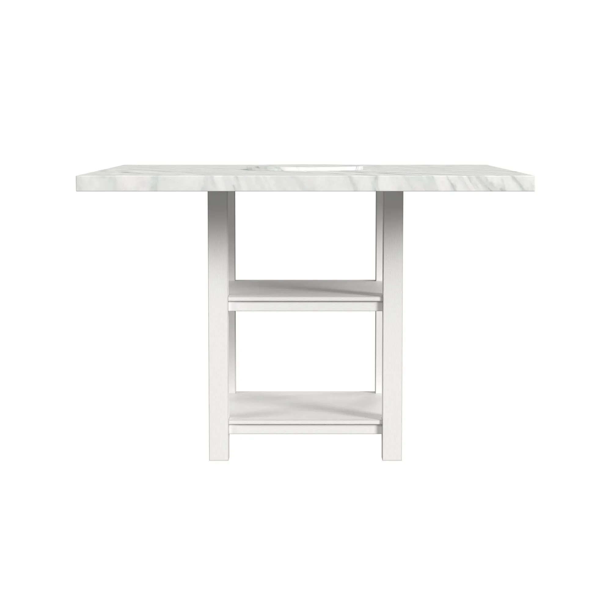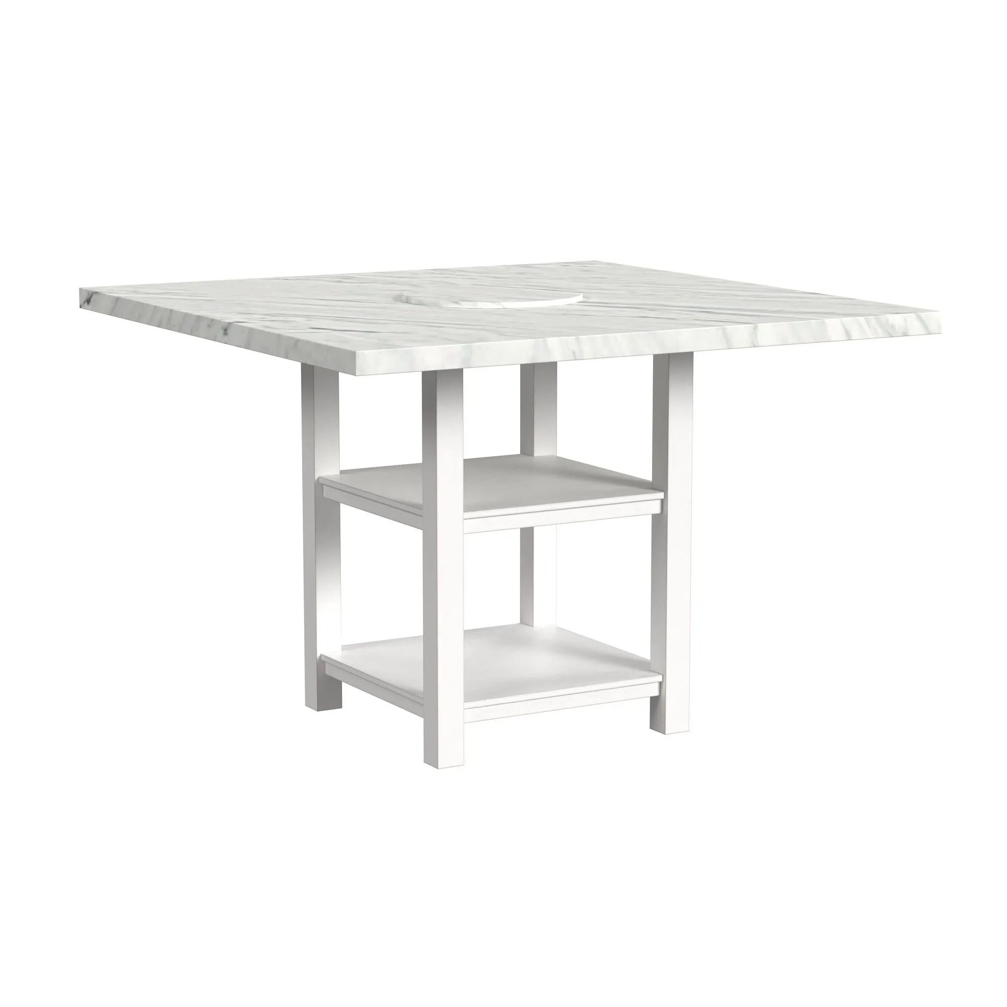 Karina Square Counter Table with Grey Faux Marble and Lazy Susan in Washed White