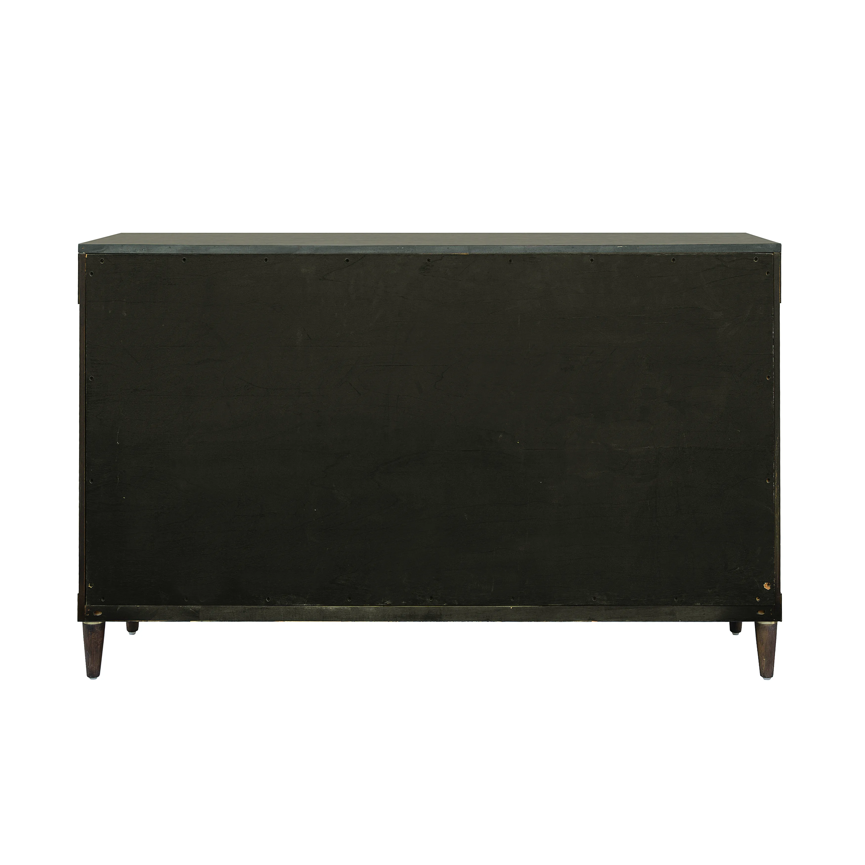 - Hardware: Elegant metal collar accents and custom bar pulls in a soft brass finish serve as the perfect finishing touch to the classic profile