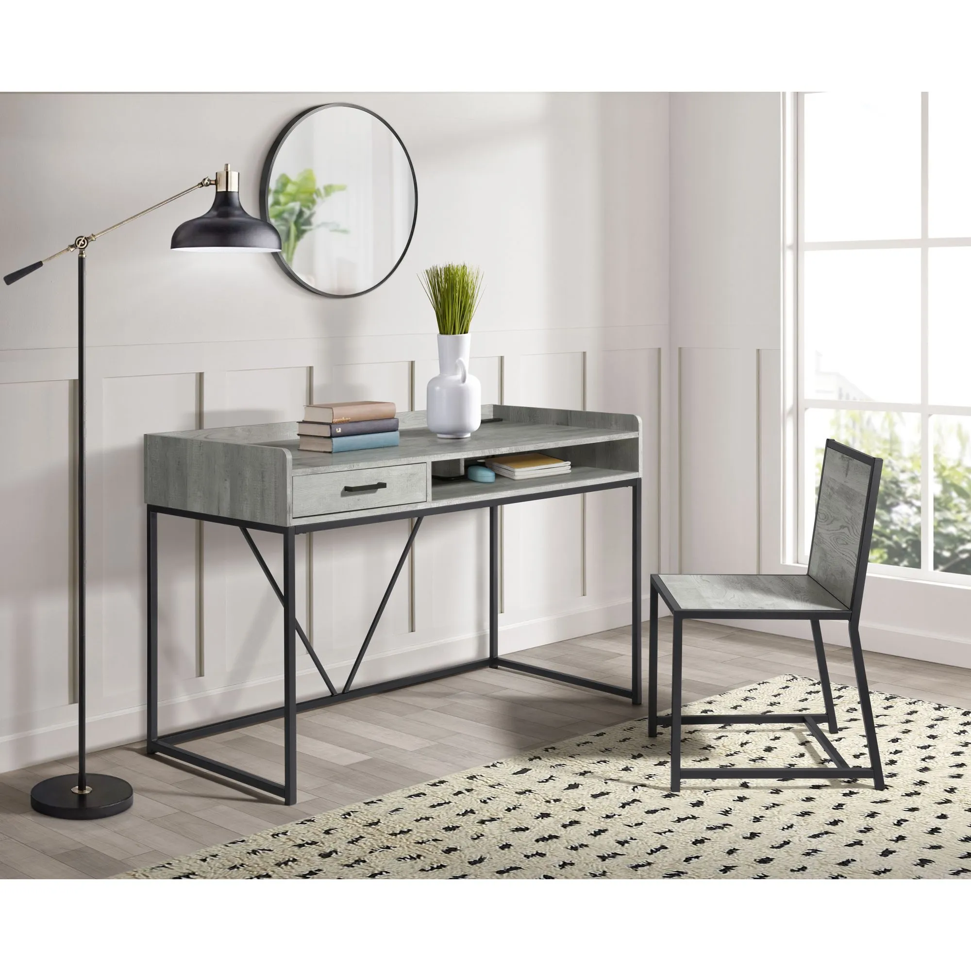 Portico Half Pedestal Desk with Power/USB in Brown Oak