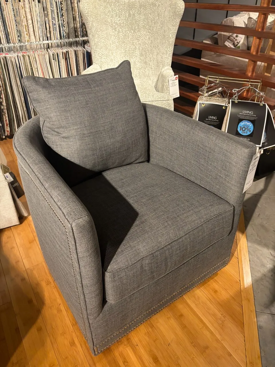 Please note that the finish or fabric of this product in-store may be different than the photo currently pictured. Please contact us to confirm product pricing, availability, finish and fabric colors and promotional dates.