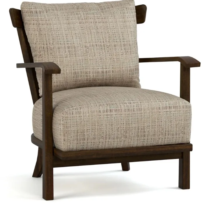 The casual Hudson Valley Wood-Frame Chair features an eye-catching exposed-wood frame in which every piece is crafted from solid American black walnut. A series of straight spindles is topped by an exaggerated curved cap rail, similar to that found on the Hudson Valley Spindle Bed. Sinuous arms curl over reverse tapered posts at the front, then extend fully around the chair to intersect the spindles and outward-sweeping rear posts. Finally, a wooden base supports an extra-thick seat cushion with sink-in softness and a loose knife-edge back pillow tailored for a perfect fit.