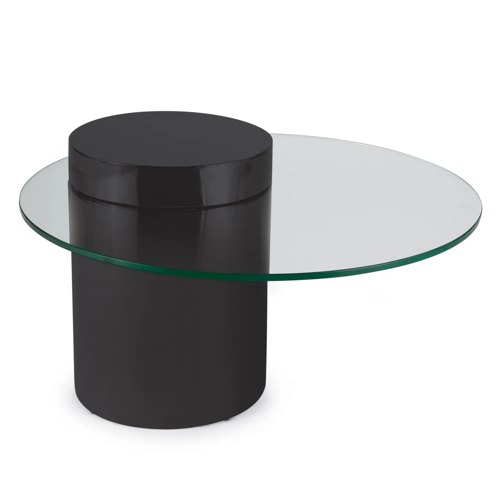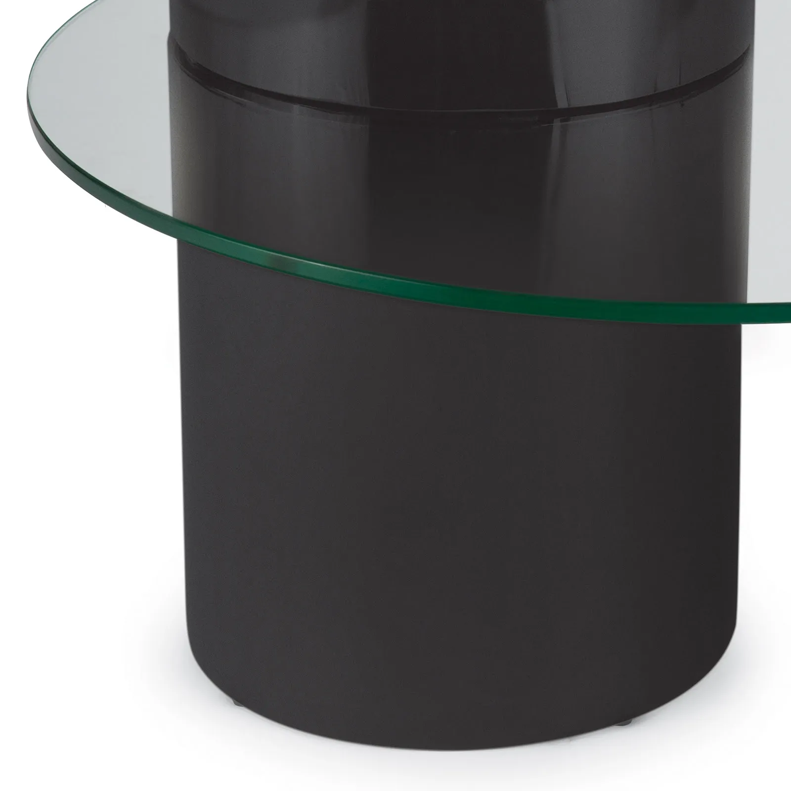 The Black Odette Coffee Table flaunts organic modernity. This conversation piece adds a modern touch, with a cylindrical black stainless steel base topped with clear glass.