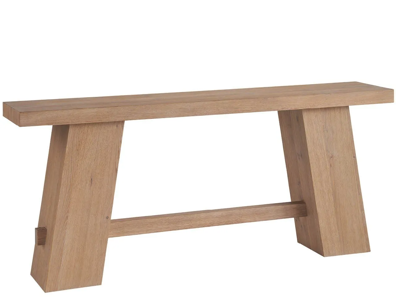 The Altitude Console Table is a sturdy and stylish piece of furniture that adds a touch of natural warmth to any space. Its angled legs and horizontal design element, echoing the lines of the tabletop, create a visually interesting look, making it a functional and stylish addition to any entryway or living room.