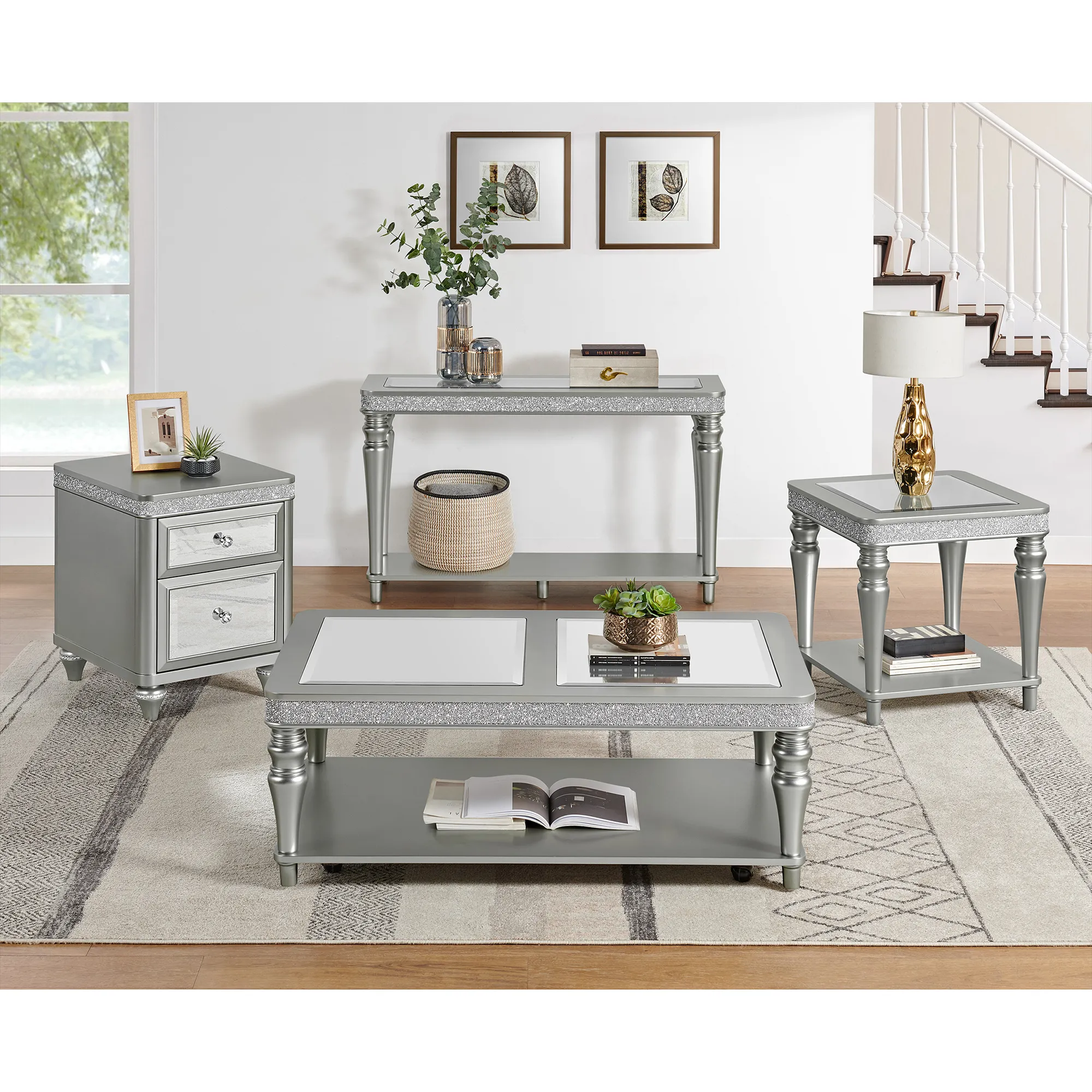 Avril Coffee Table with Casters in Silver