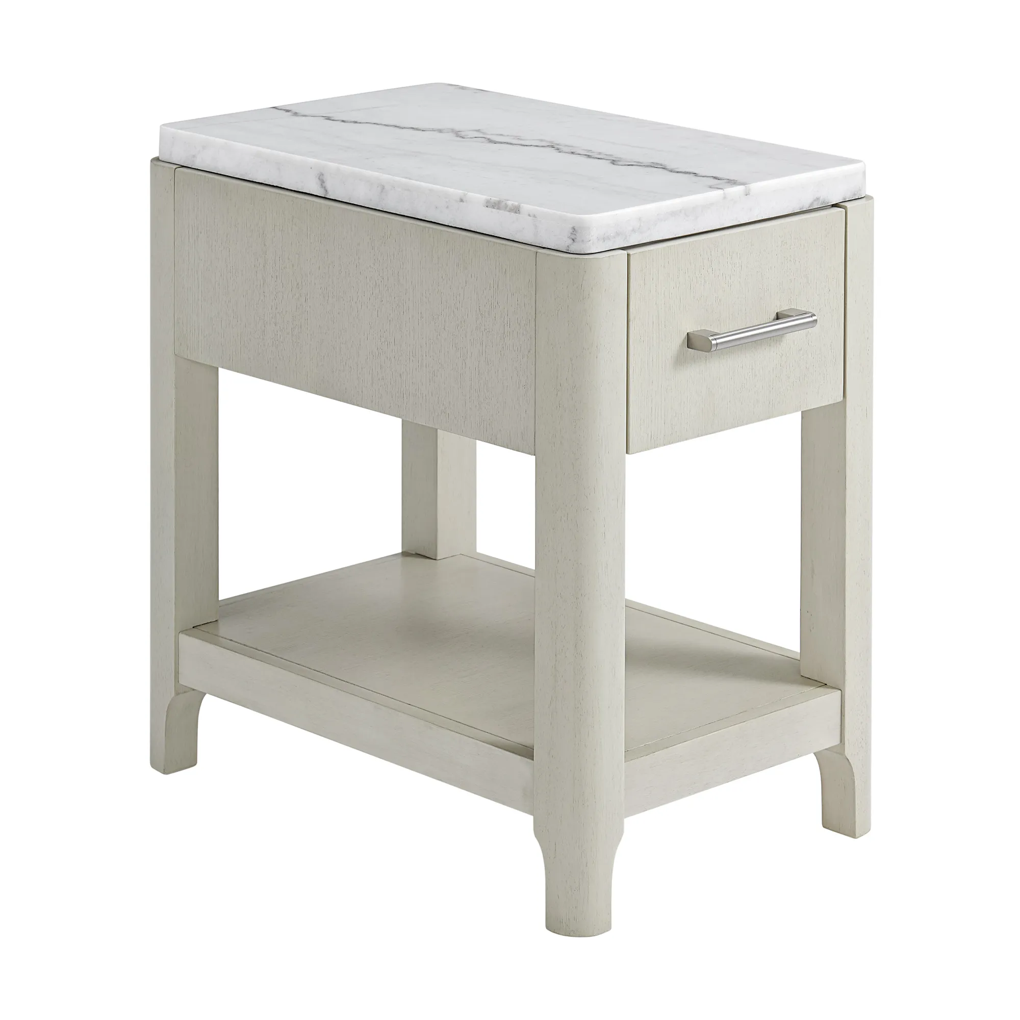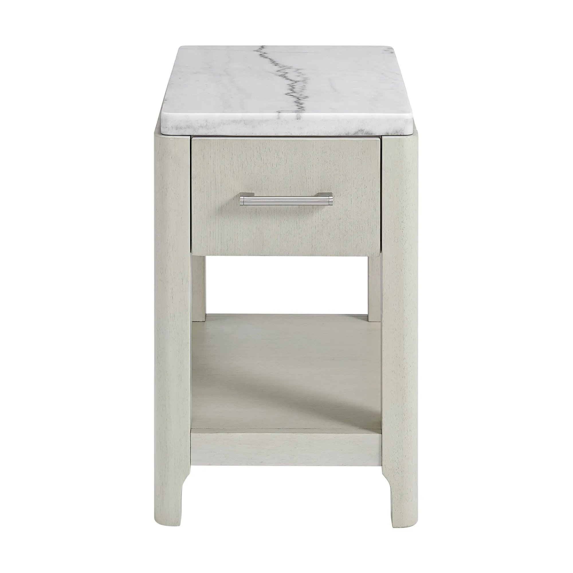 Stone Occasional Round Side Table With Pu Base Gray Finish