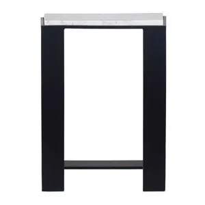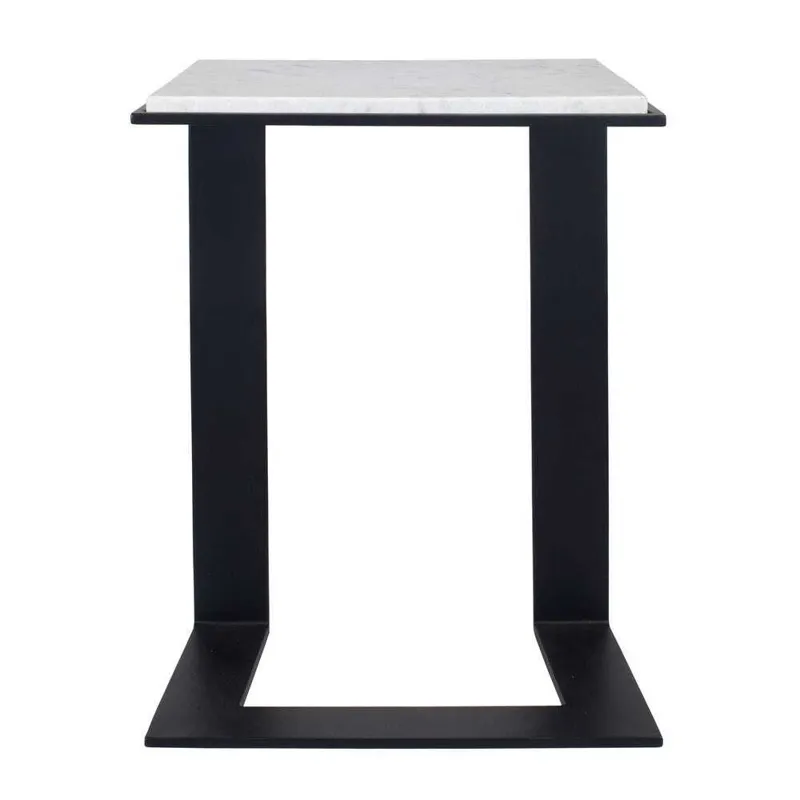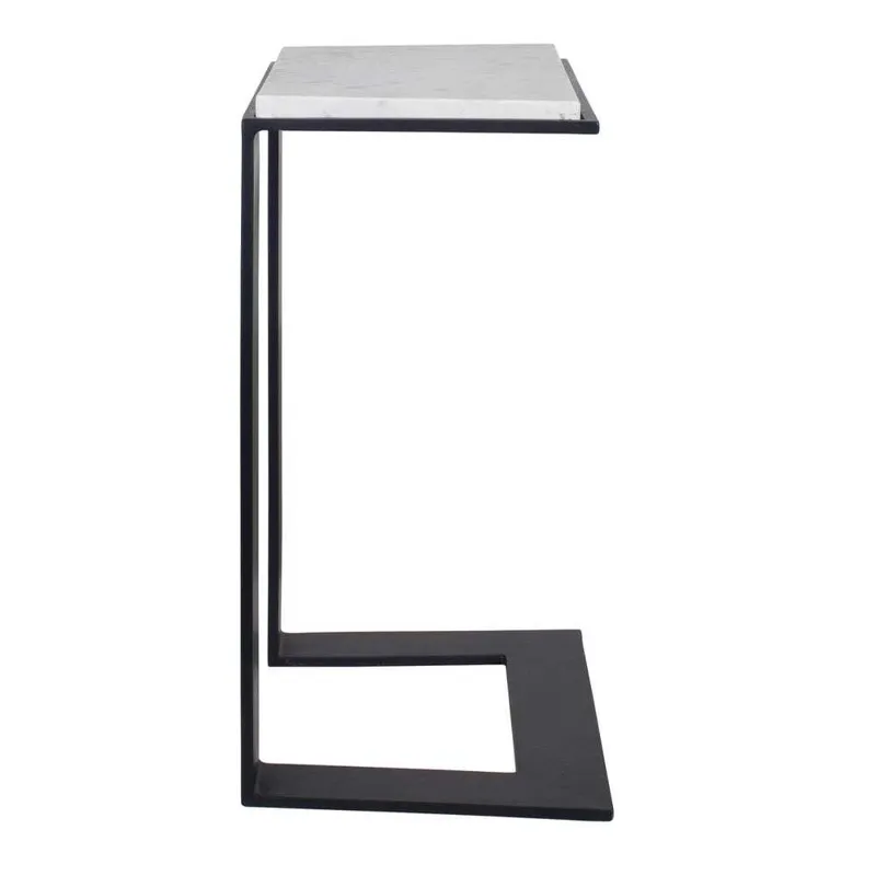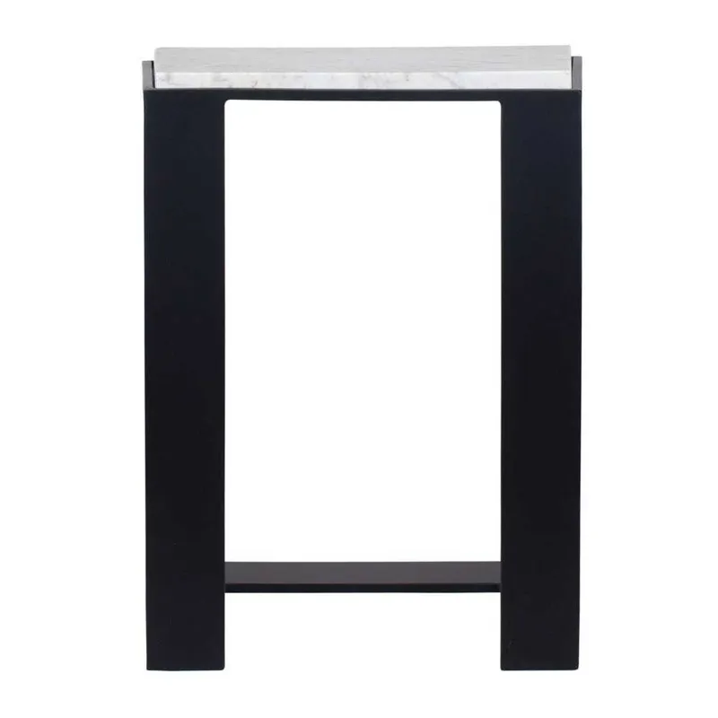 This accent table boasts a honed white marble top, beautifully framed in black-plated iron, creating a striking contrast of materials. True to the nature of natural materials, each piece will have unique marbling and veining throughout.