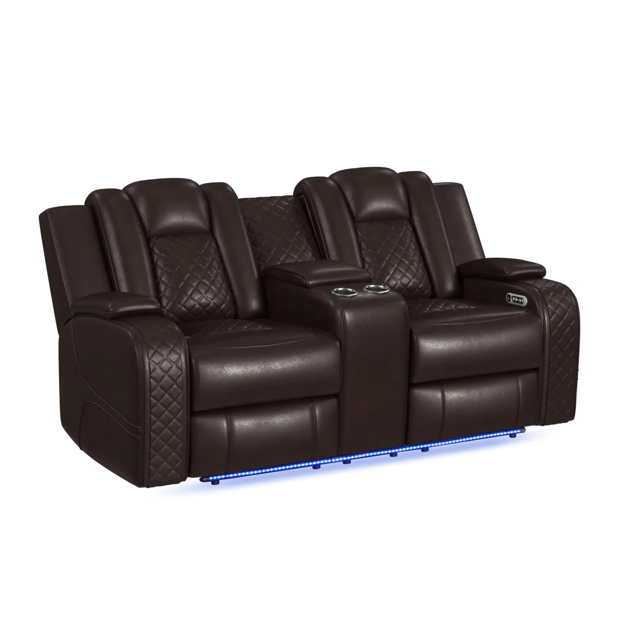 Carlo Power Motion Loveseat with Power Headrest, Console, LED and Wireless Charger in Pebble Black
