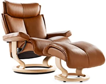 Fall under the spell of the newest recliner from the innovators of comfort. Forty years of design expertise coupled with the very latest advancements in furniture making technology result in pure Magic! Extraordinarily luxe cushioning and carefully sculpted proportions make the Stressless® Magic our most comfortable recliner yet. Using the Stressless patented Glide®, and Plus® systems, Magic responds to your bodies slightest movement. Coupled with an adjustable headrest, the Stressless Magic delivers superior support and unprecedented comfort. Today, the first ergonomically designed recliner remains the best.