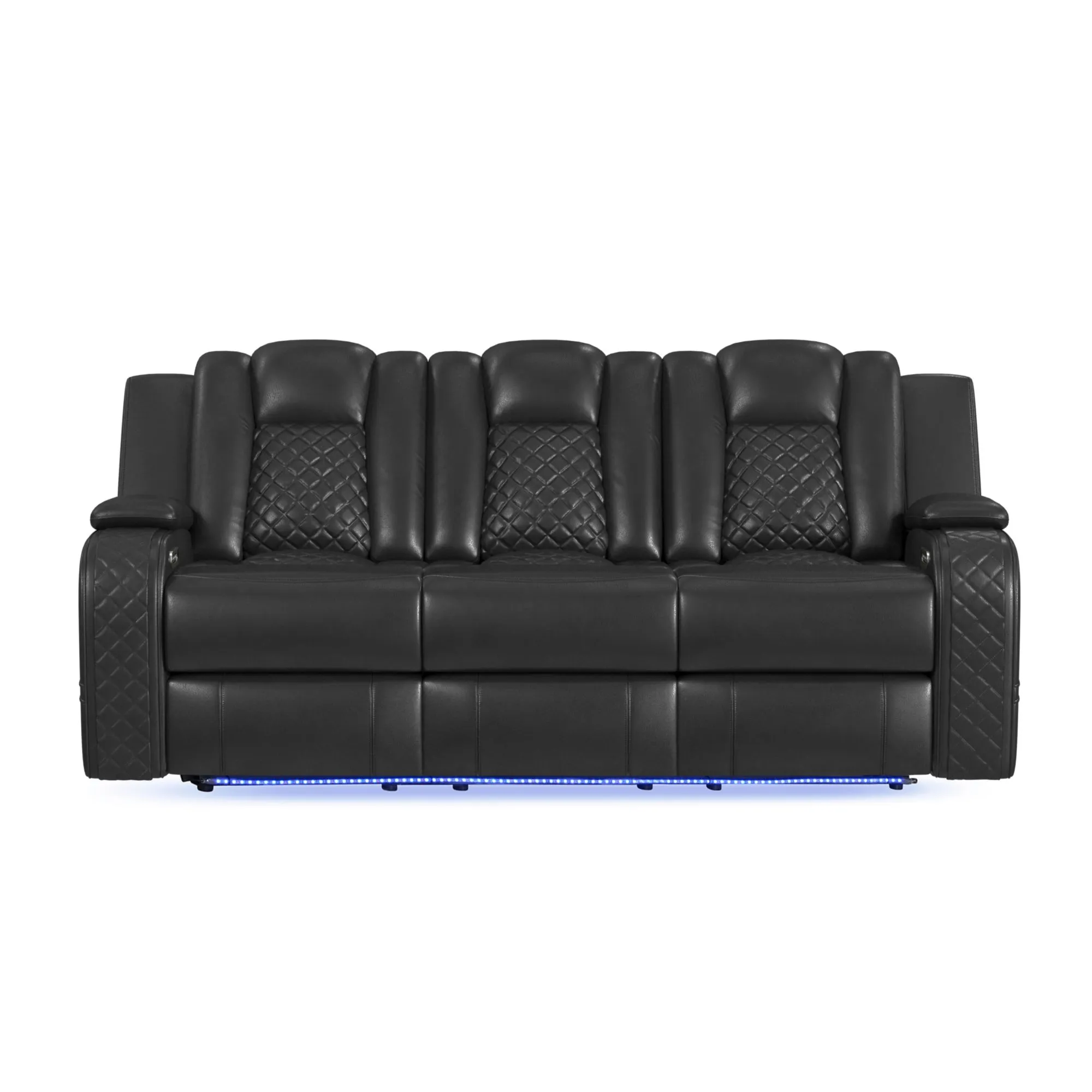 Carlo Motion Sofa with Dropdown Table, Power strip and Reading Light in Pebble Black
