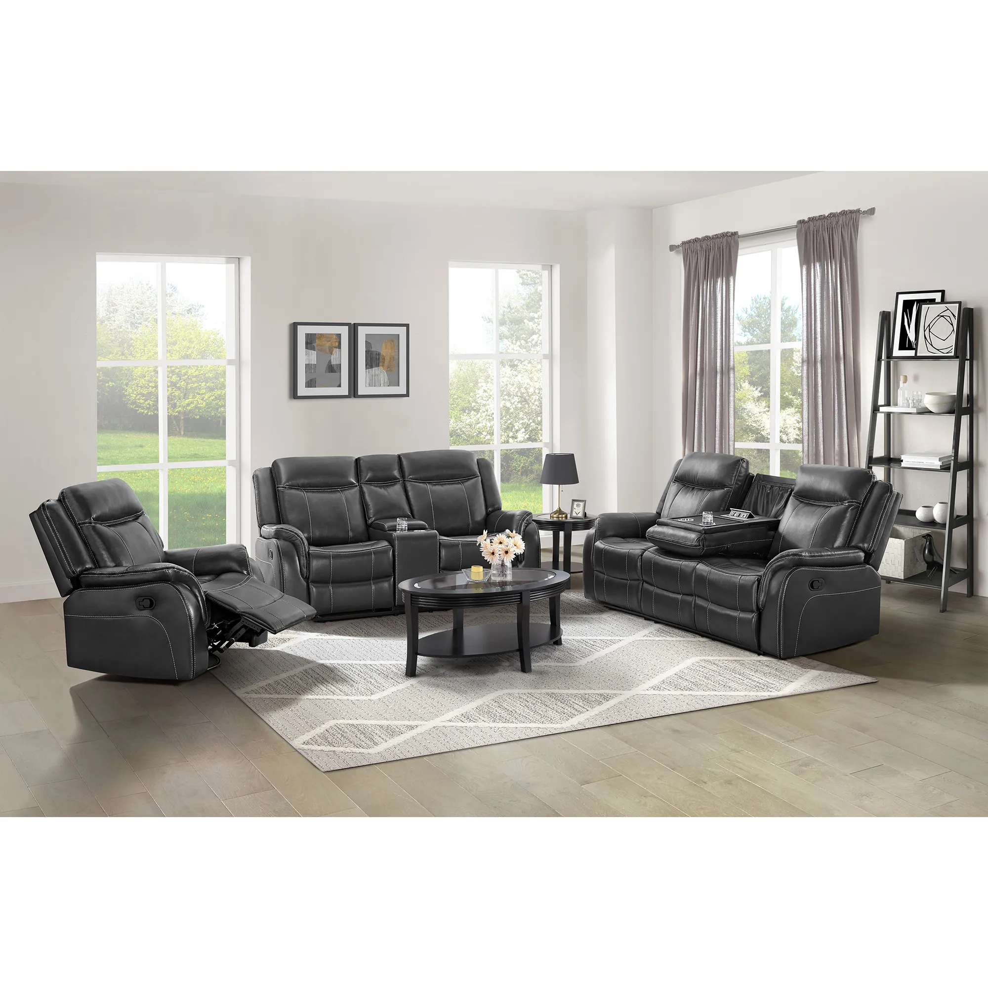 Carrera Motion Glider Loveseat with Console in Grey