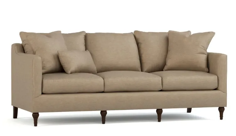 Like the entire collection, the Hudson Valley 86-inch Sofa gives tradition a refreshing update. Here a weltless track arm rises in a subtle wing, enclosing plush seat and back cushions; beneath them, our modern DuraCoil spring system provides years of support and comfort. Across the front of the sofa, four turned maple legs tie back to traditional style.