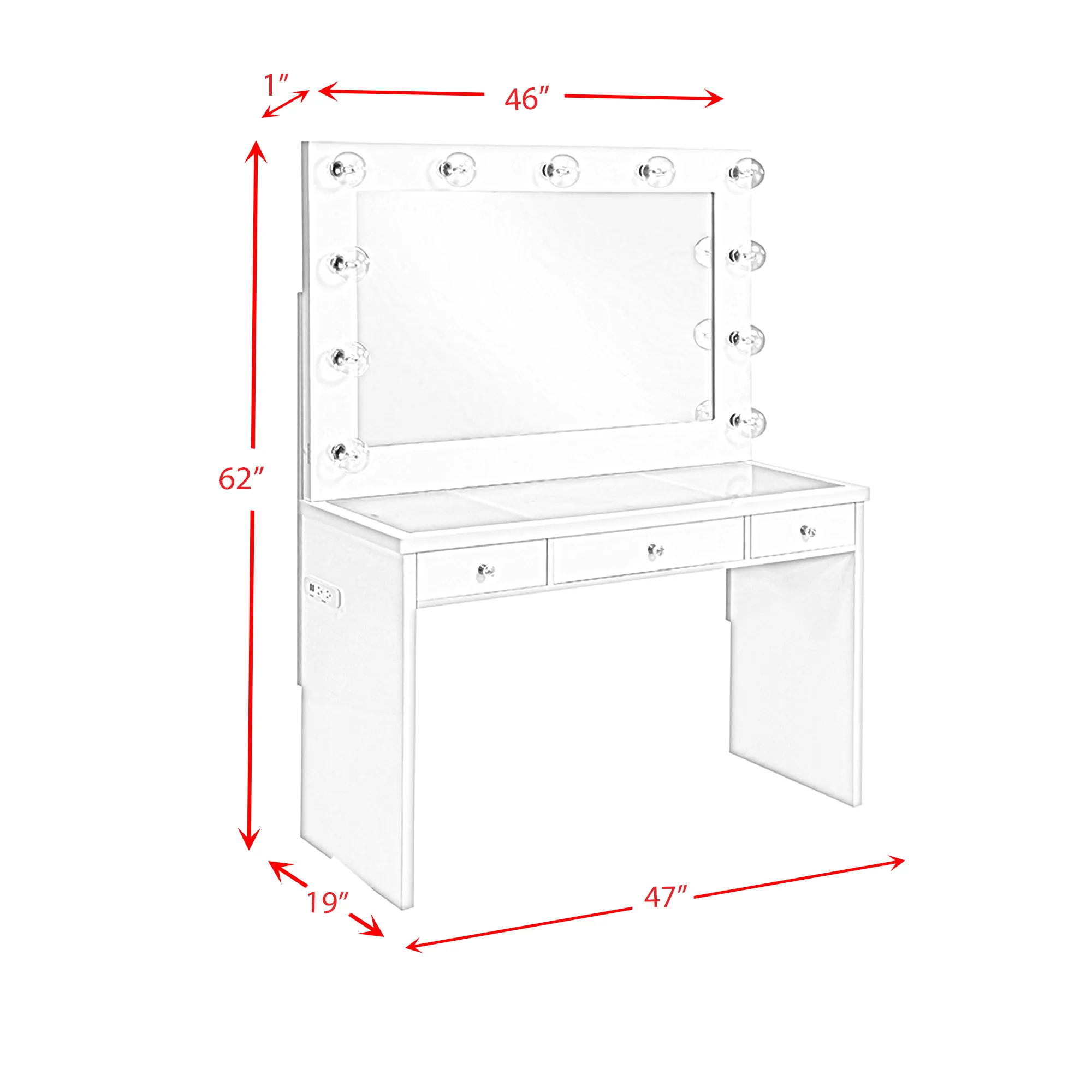 Amia Complete Dressing Table with Lightbulbs