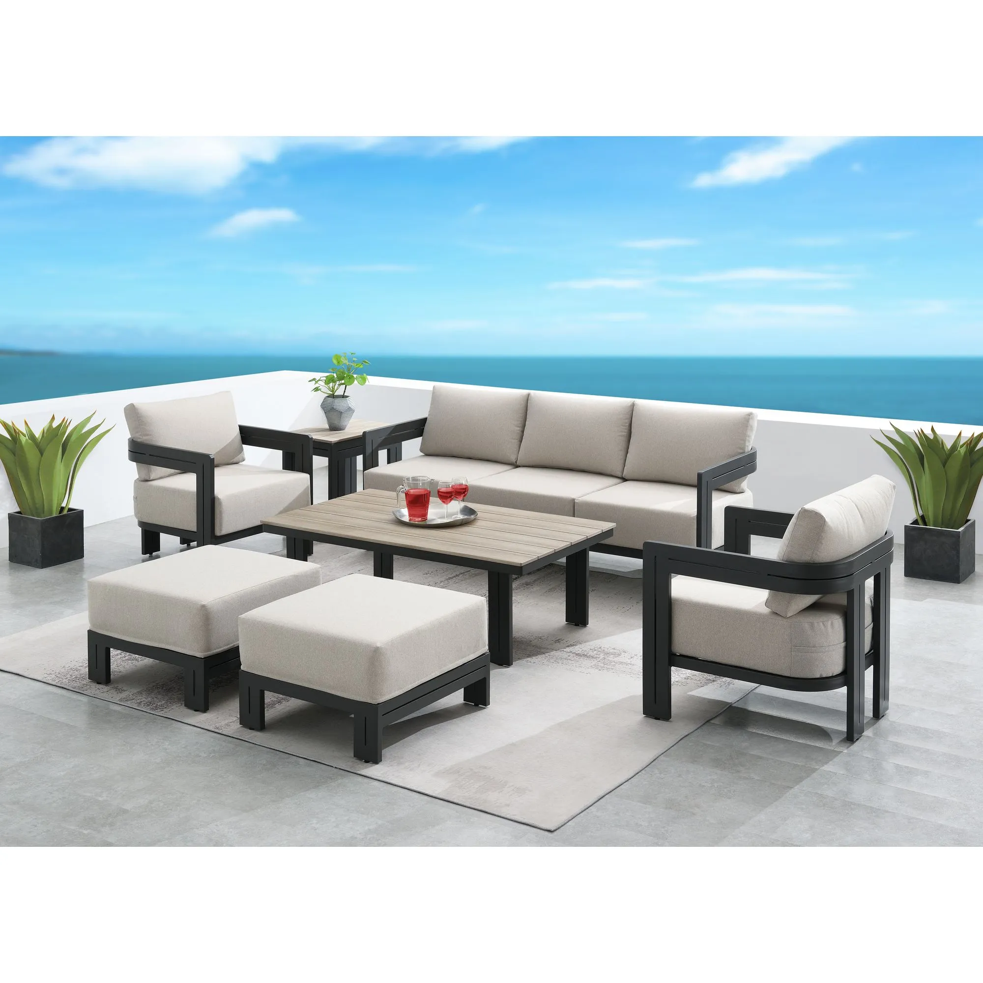 Grace Outdoor Seating 4PC Set - Black, Natural and Olefin Beige